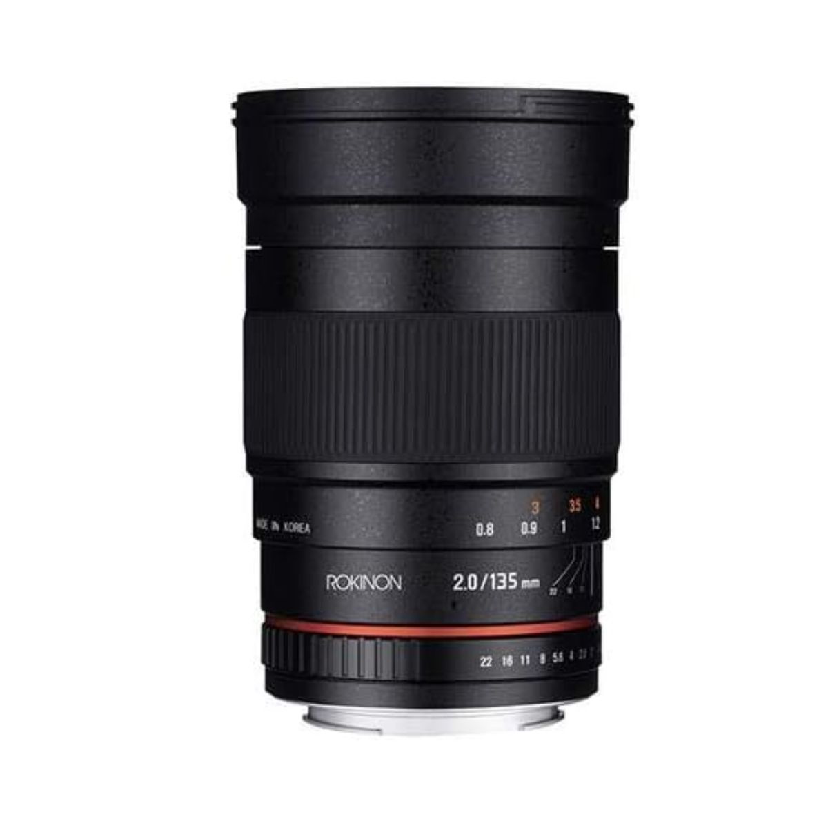The 135mm f2 telephoto lens by Rokinon delivers sharp, high-quality images for Canon DSLR users. Perfect for portraits and astrophotography enthusiasts.