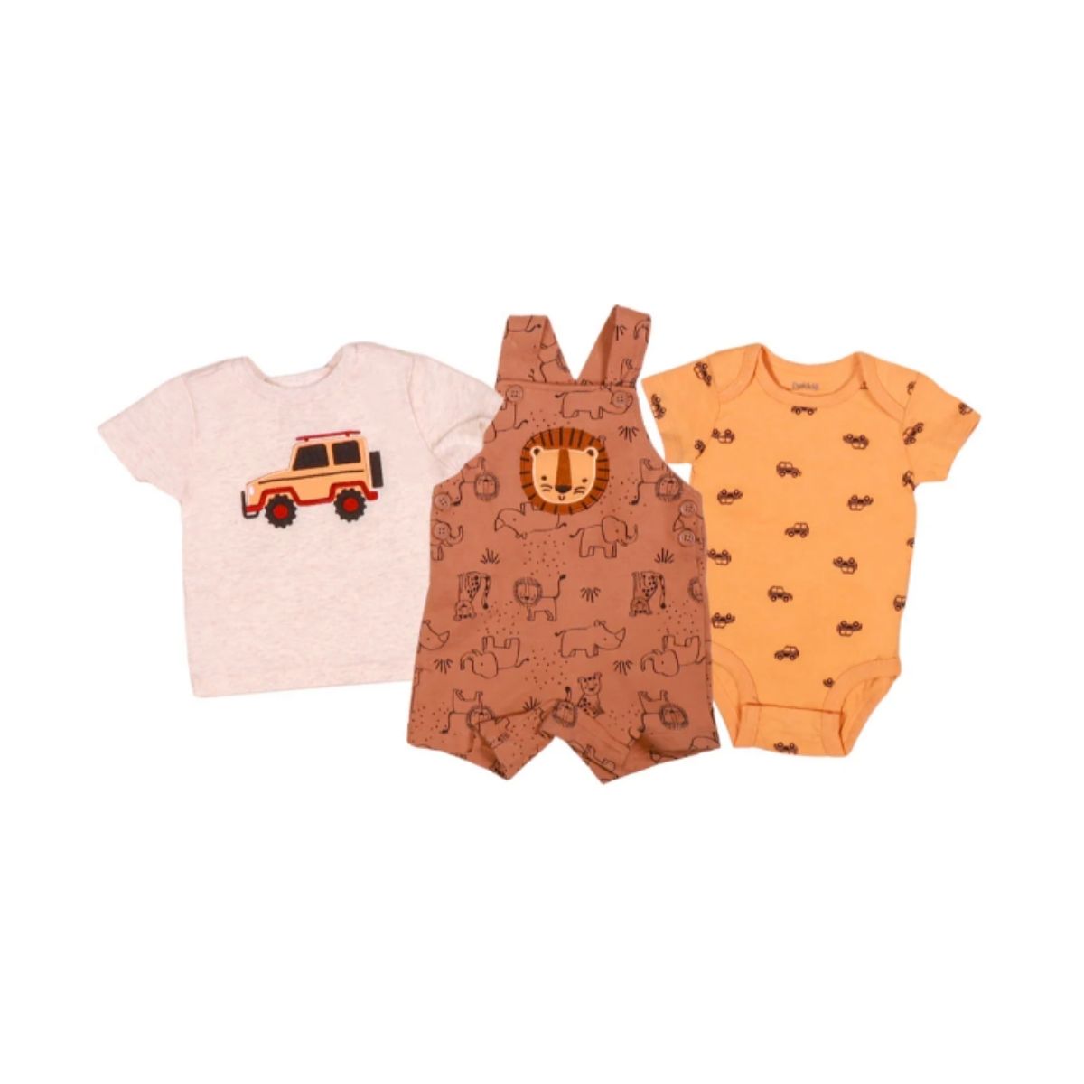 The 3 piece baby set by Pekkle includes dinosaur print t-shirts, overalls, and a onesie, perfect for your 9M infant’s comfort and style.