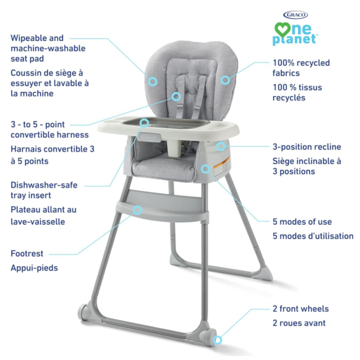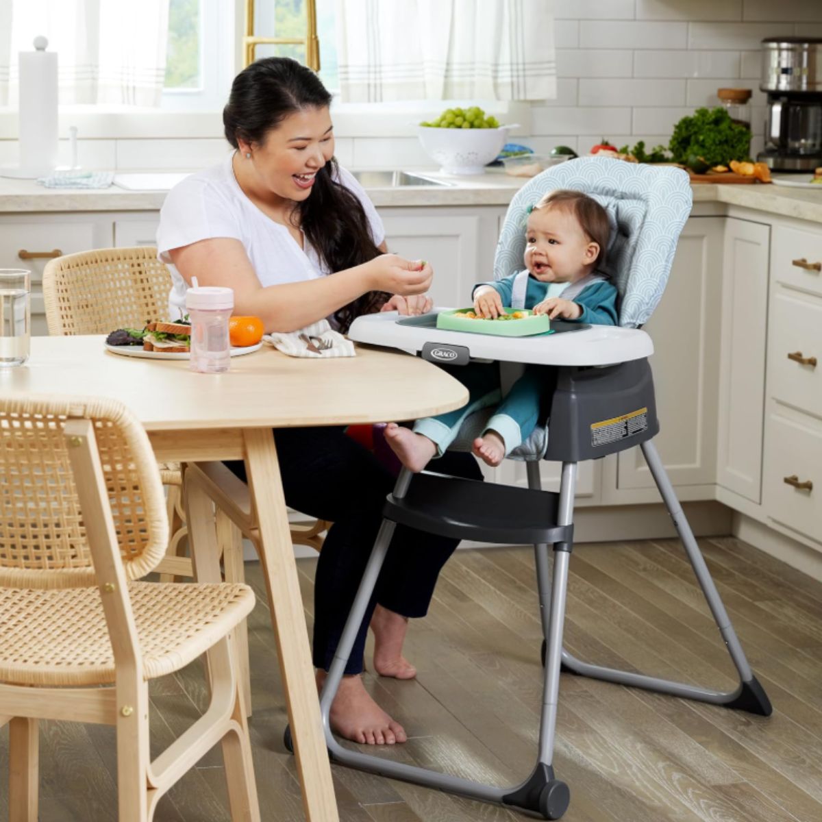 The 5-in-1 highchair by Graco is perfect for infants and toddlers. It features adjustable recline and eco-friendly materials for comfortable feeding and easy cleaning.