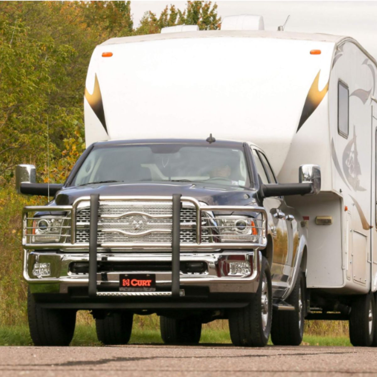 5th wheel hitch rails by CURT offer a durable carbide black finish and universal fit. Perfect for most 5th wheels and gooseneck adapters.