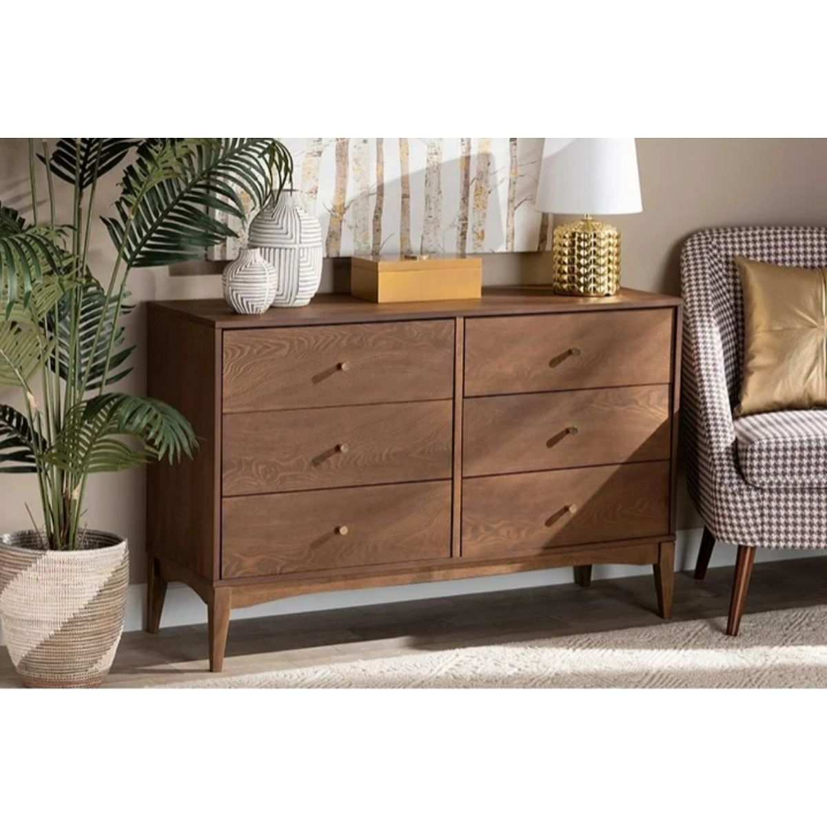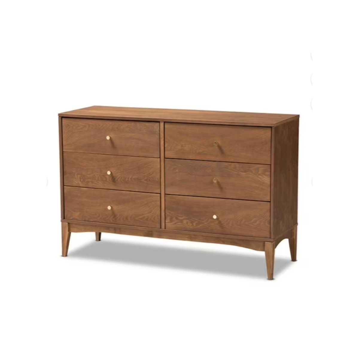 6 Drawer Dresser – Baxton Ash Walnut and Gold