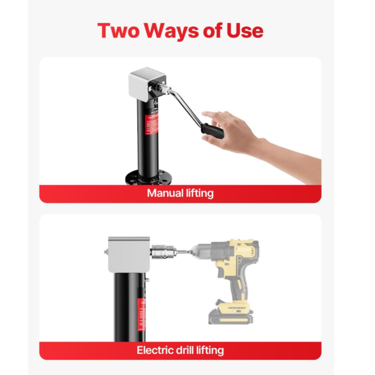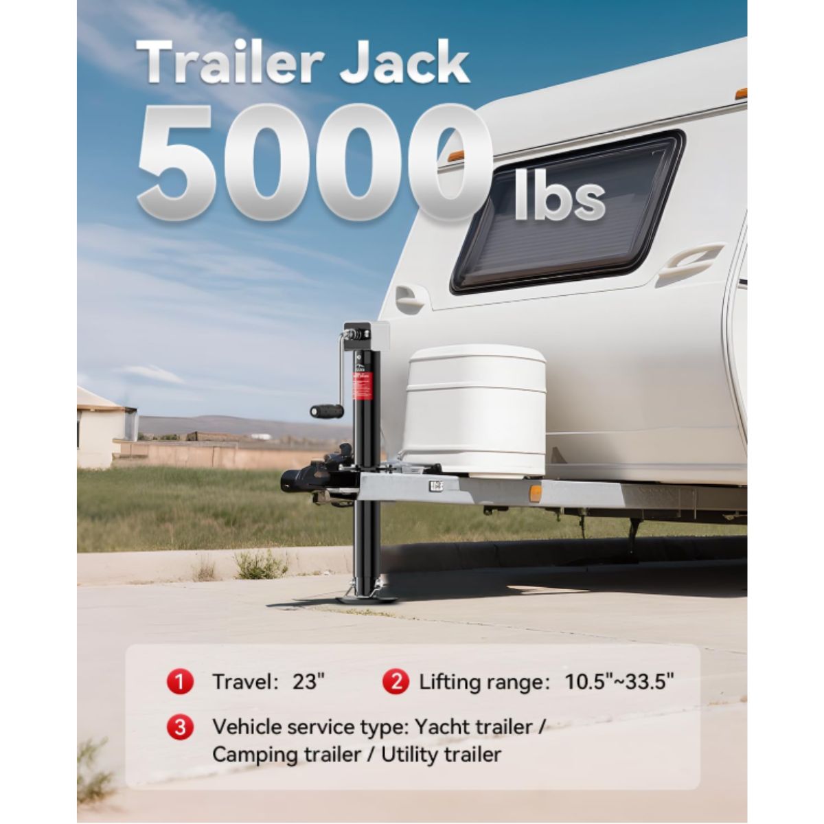 The a-frame trailer jack by FZZD has a 5000 lbs lift capacity and works with cordless drills for easy use. Perfect for utility trailers and RVs.