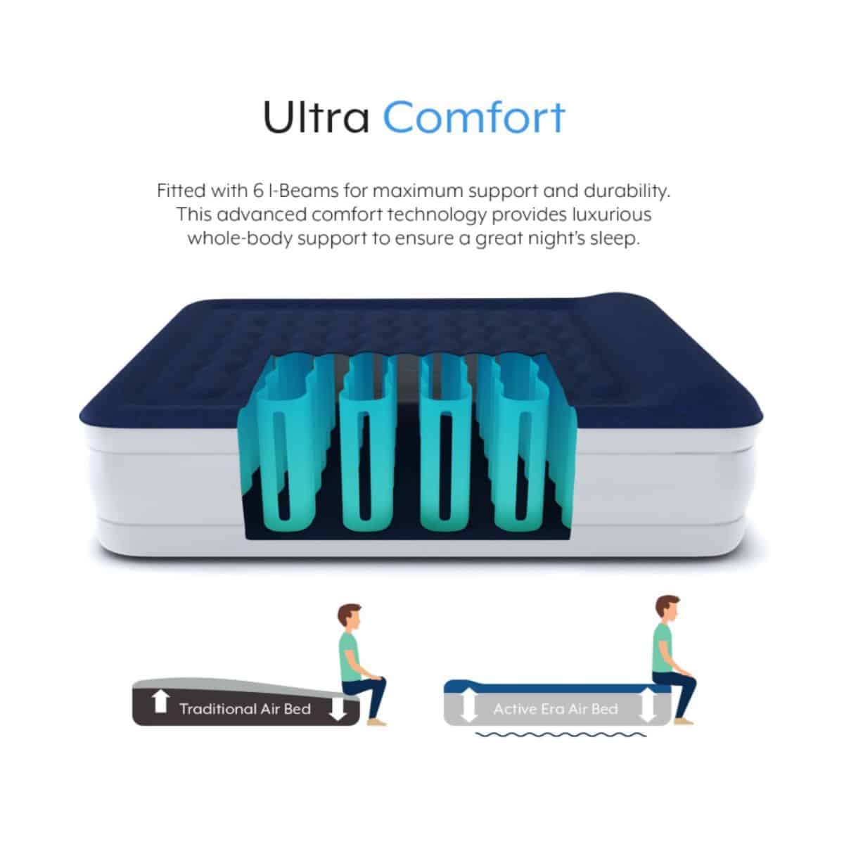 Active Era Luxury Queen Size Air Mattress – Elevated Inflatable Double Air Bed, Electric Built-in Pump, Raised Pillow & Structured I-Beam Technology, 4 Minute Self Inflating Air Mattress, 22″ Height