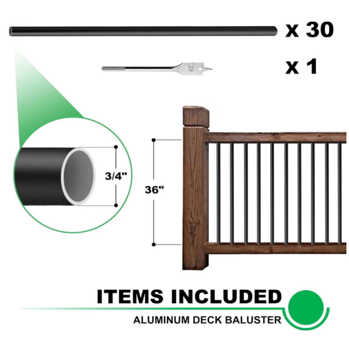 Aluminum Deck Railing Balusters – Andorm Black 36 inch