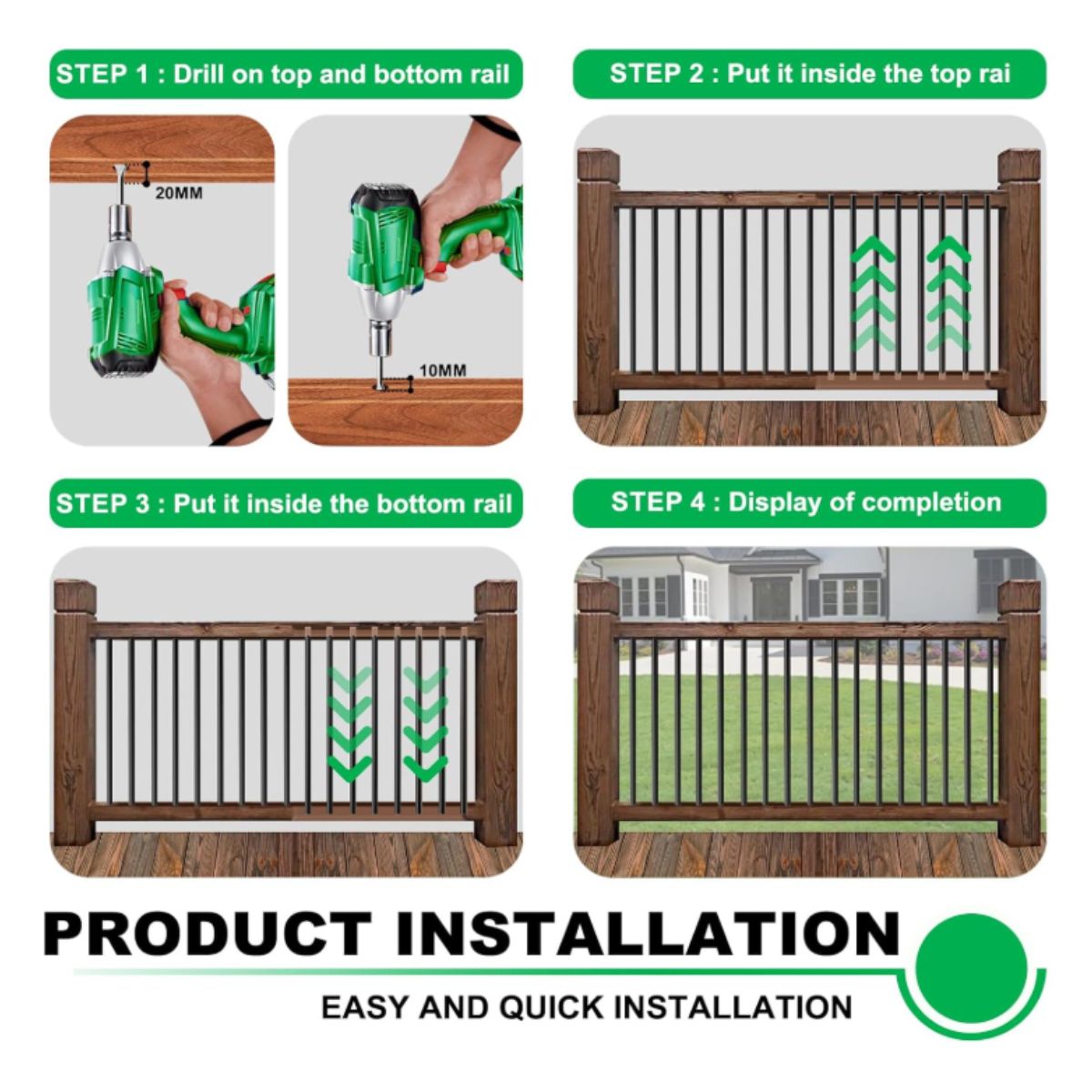Aluminum deck railing balusters by Andorm provide durable, rust-free support for your deck. Perfect for wood and composite railings.