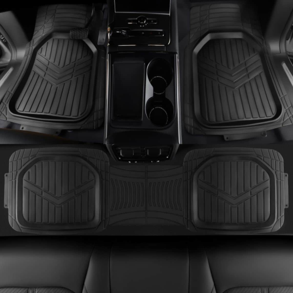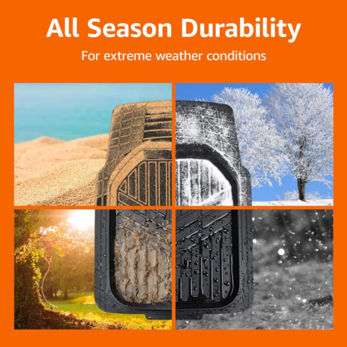 Amazon Basics all weather protection universal floor mats offer great durability and a trim-to-fit design. Perfect for cars, SUVs, and trucks seeking reliable floor coverage.