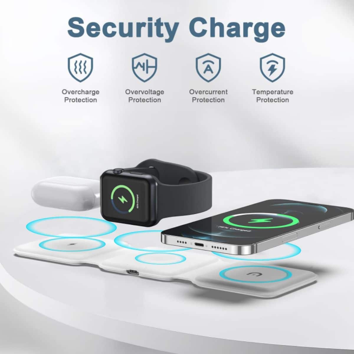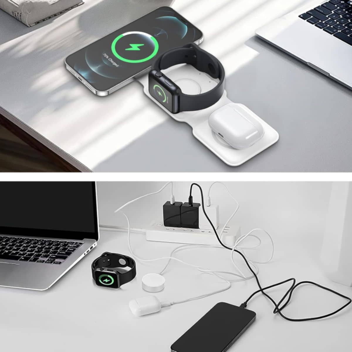 Experience cutting-edge technology with 3 in 1 Foldable Wireless Charger, Ankilo Charger Charging Station for Multple Devices,Travel Charger for iPhone 15/14/13/12 Series, iWatch, AirPods Pro(Adapter not Included). 3 engineered this lightweight device to saves you time and effort. professionals’ choice for reliable performance for its reliable performance and innovative features.