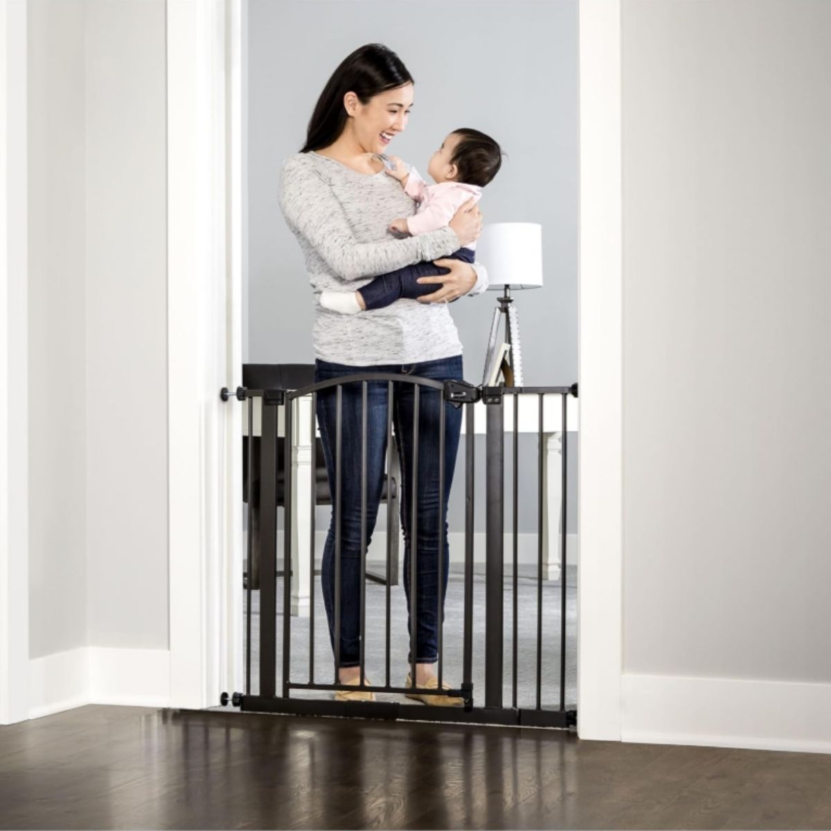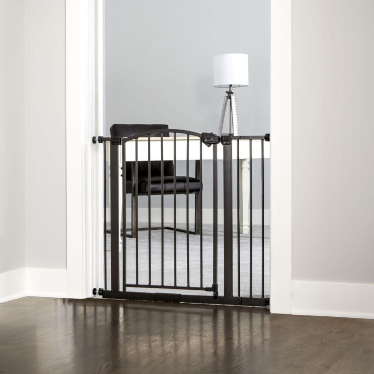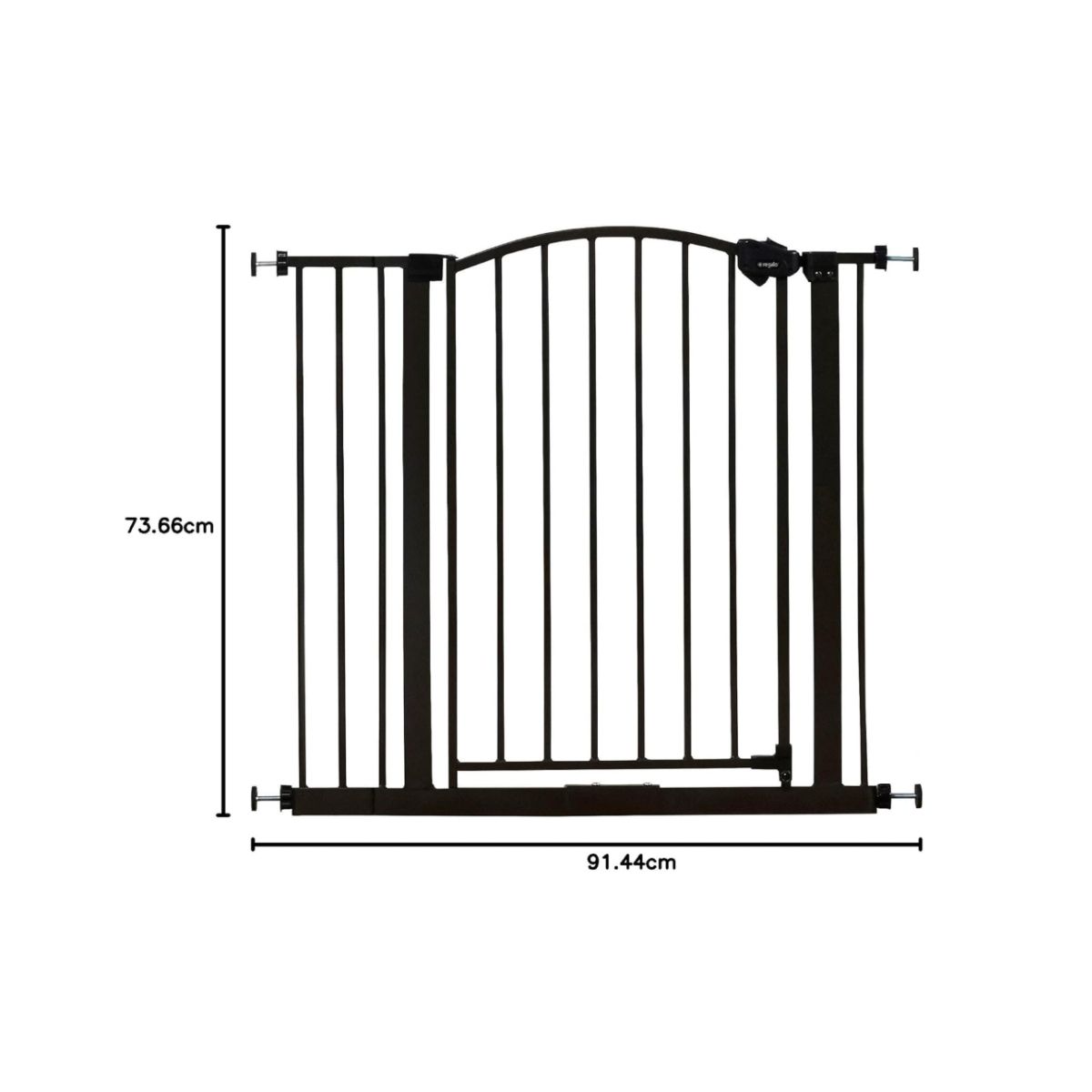The arched safety gate by Regalo offers a bronze finish and extra wide fit for openings 29 to 37 inches. Ideal for child and pet safety.