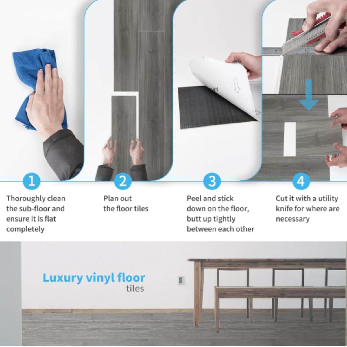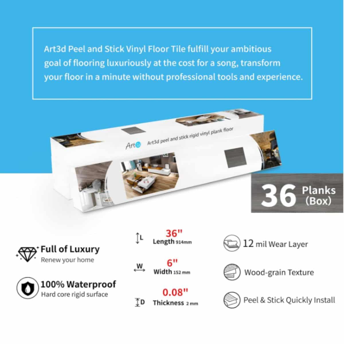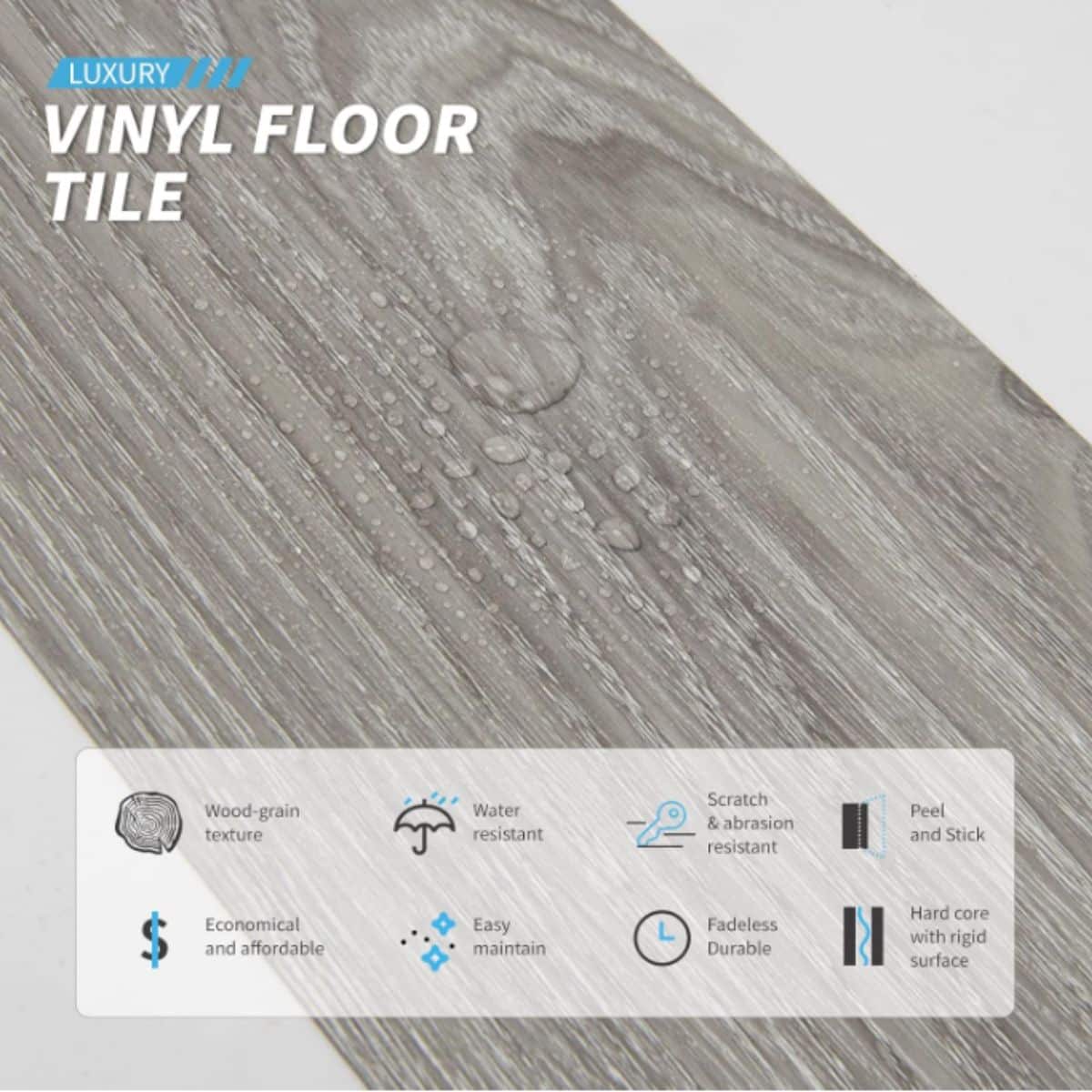 This Art3d peel and stick floor tile offers a quick and stylish floor upgrade. Featuring a rigid hard-core surface, it’s perfect for light grey DIY flooring projects.