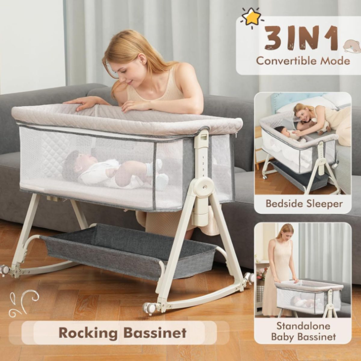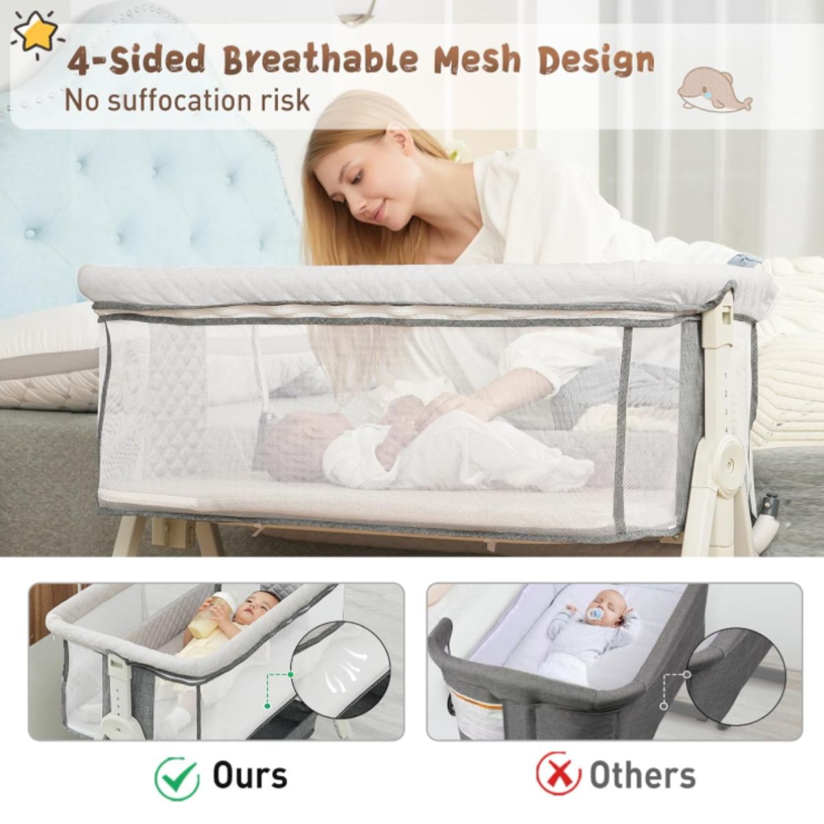 Baby Bassinet Bedside Sleeper – MEICHYUN Grey