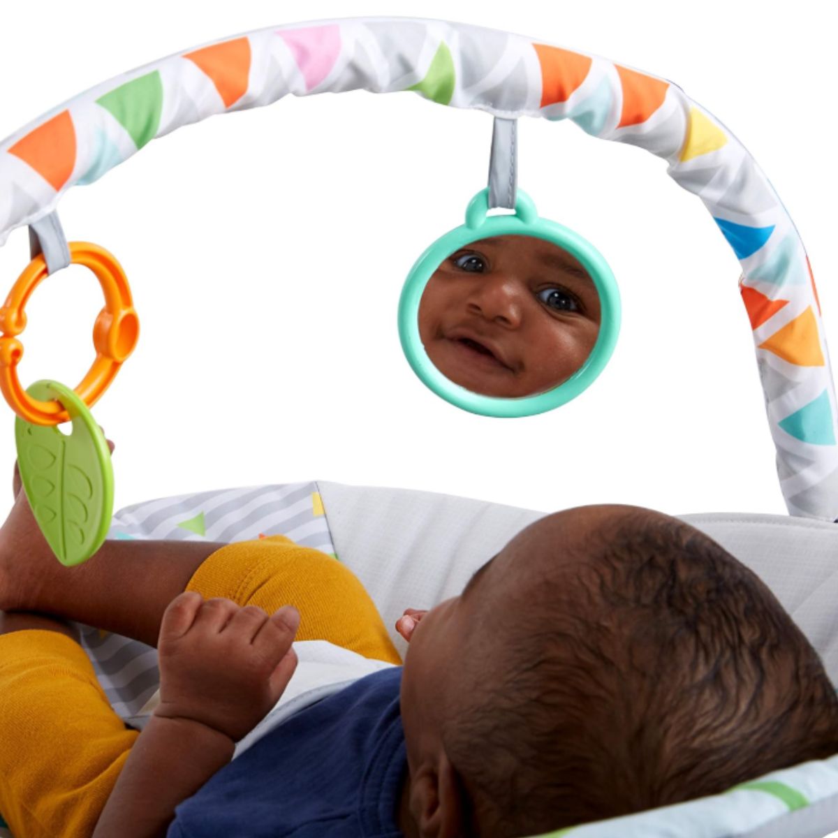 The baby bouncer soothing vibrations by Bright offers comfort and fun with a removable toy bar and nonslip feet. Perfect for babies 0-6 months.