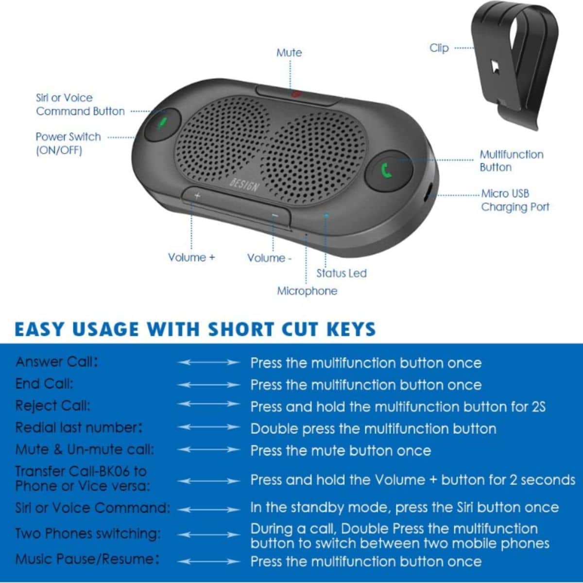 Experience cutting-edge technology with Besign BK06 Bluetooth 5.0 in Car Speakerphone with Visor Clip, Wireless Car Kit for Handsfree Talking, Motion Auto On, Siri Google Assistant Support, Dual 2W Speakers. Besign engineered this smooth device to enhances your productivity. rated 4.8+ stars by verified buyers for its reliable performance and innovative features.