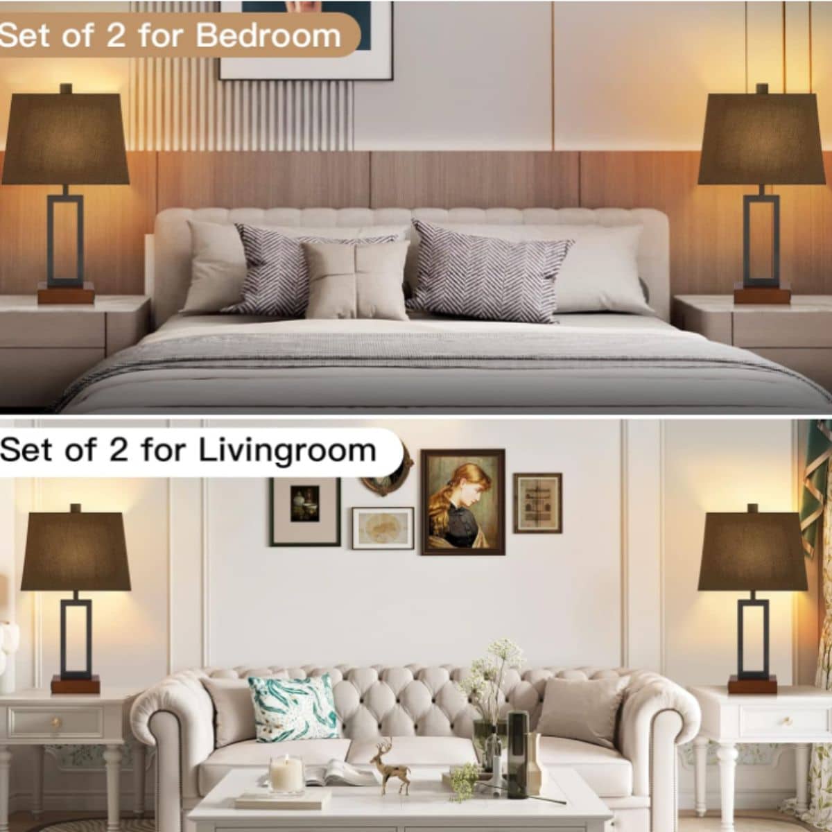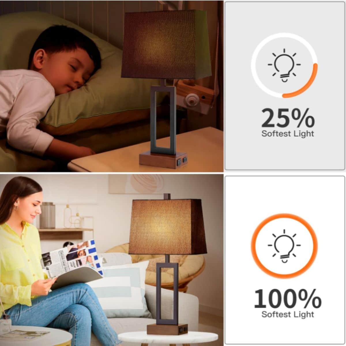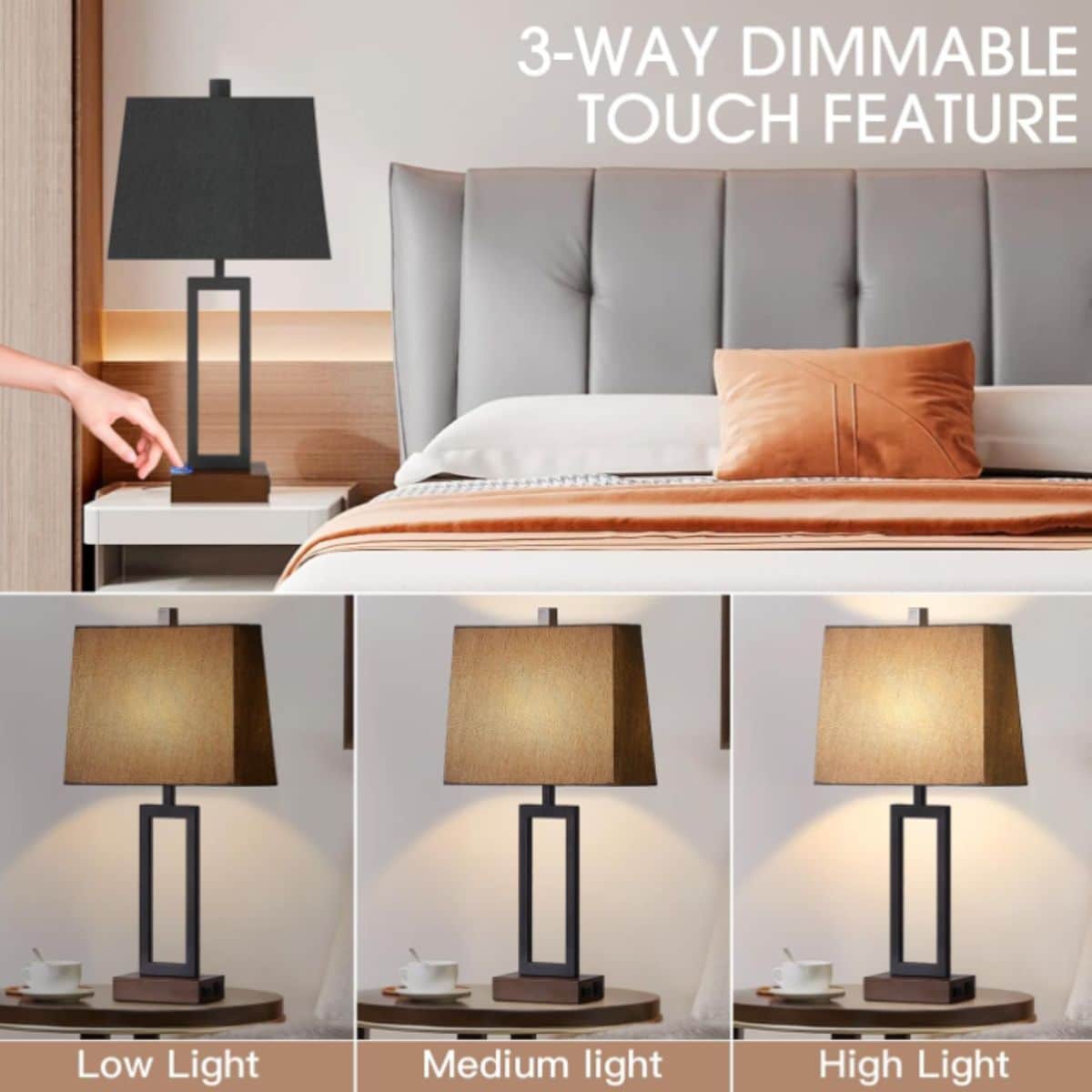 Transform your home with Black Touch Control Table Lamps Set of 2, Bedside Lamps with 2 USB Charging Ports & AC Outlet, 3-Way Dimmable Wood Nightstand Lamp for Living Room Bedroom End Table Office(2