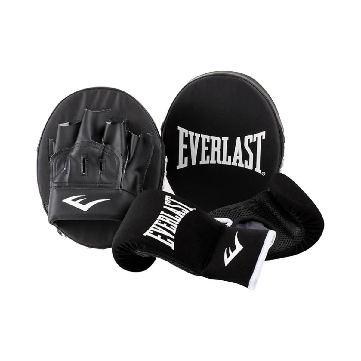 The boxing fitness kit by Everlast is perfect for boosting cardio and hand-eye coordination. Includes slip-on gloves and punch mitts for effective workouts.