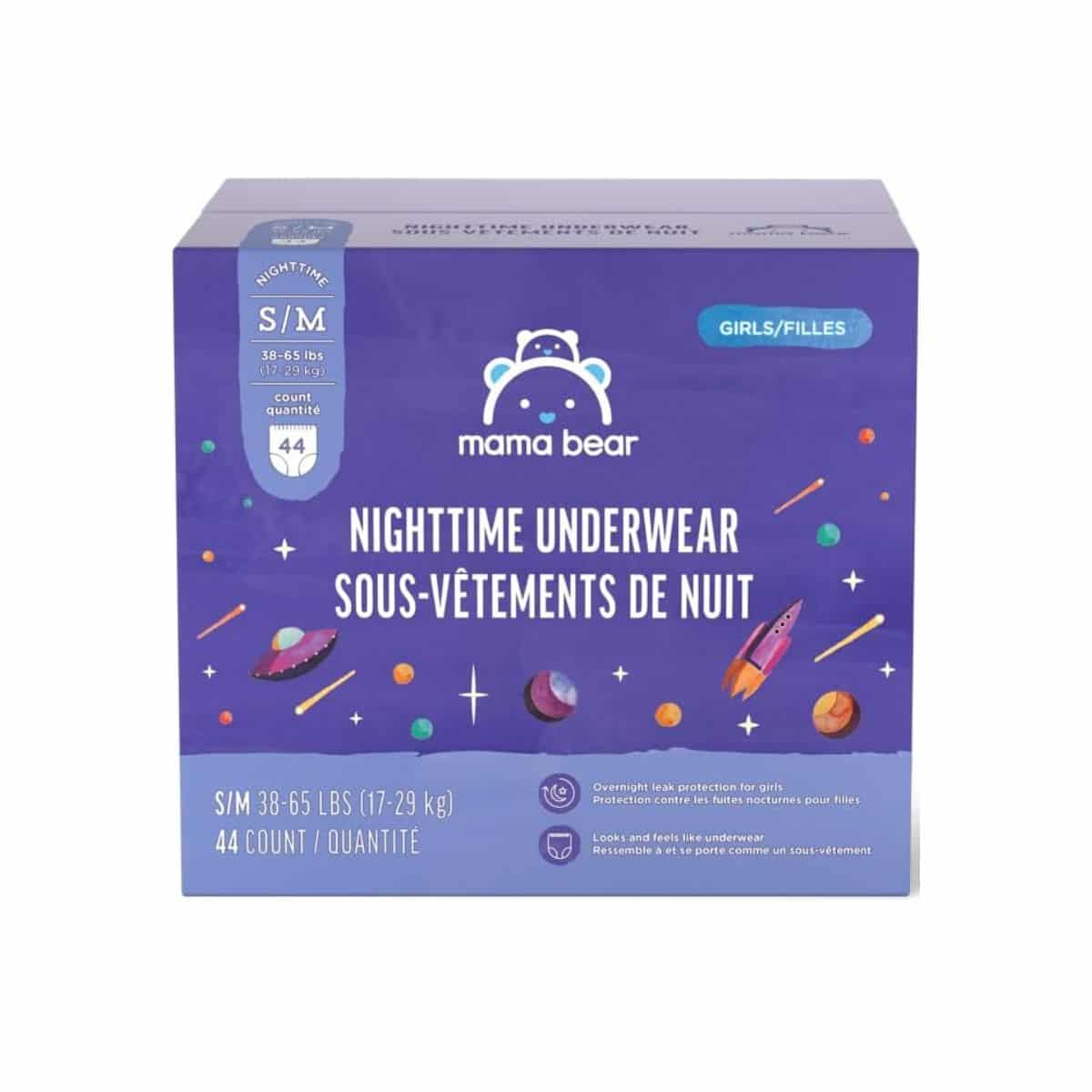 Mama Bear Girl’s Nighttime Underwear for Bedwetting, Overnight Protection, Hypoallergenic, Size S/M (38-65 lbs), 44 Count, White