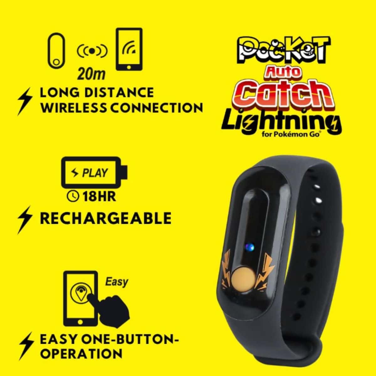 Brook Pocket Auto Catch Lightning – Simple and Easy to Use by Lightning LED Lights, Auto Spin and Catching Pocket Monsters, Collecting Items, Wristband Bracelet Accessory