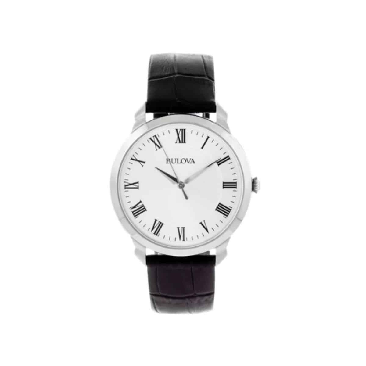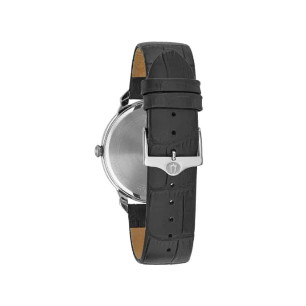 Bulova Mens Classic Quartz Watch 41mm Silver-Tone Stainless Steel Case Black Leather Strap with Silver-White Dial (96A133)