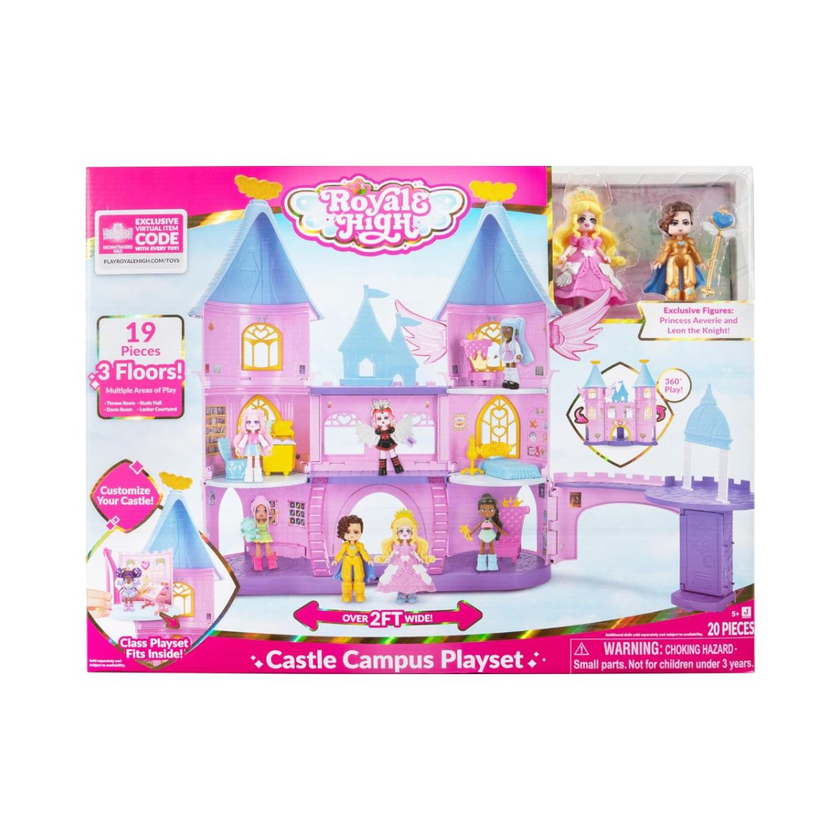 Castle campus playset by Royale High offers 360° play across three floors with exclusive dolls and 19 accessories. Perfect for imaginative kids ages 5 and up.