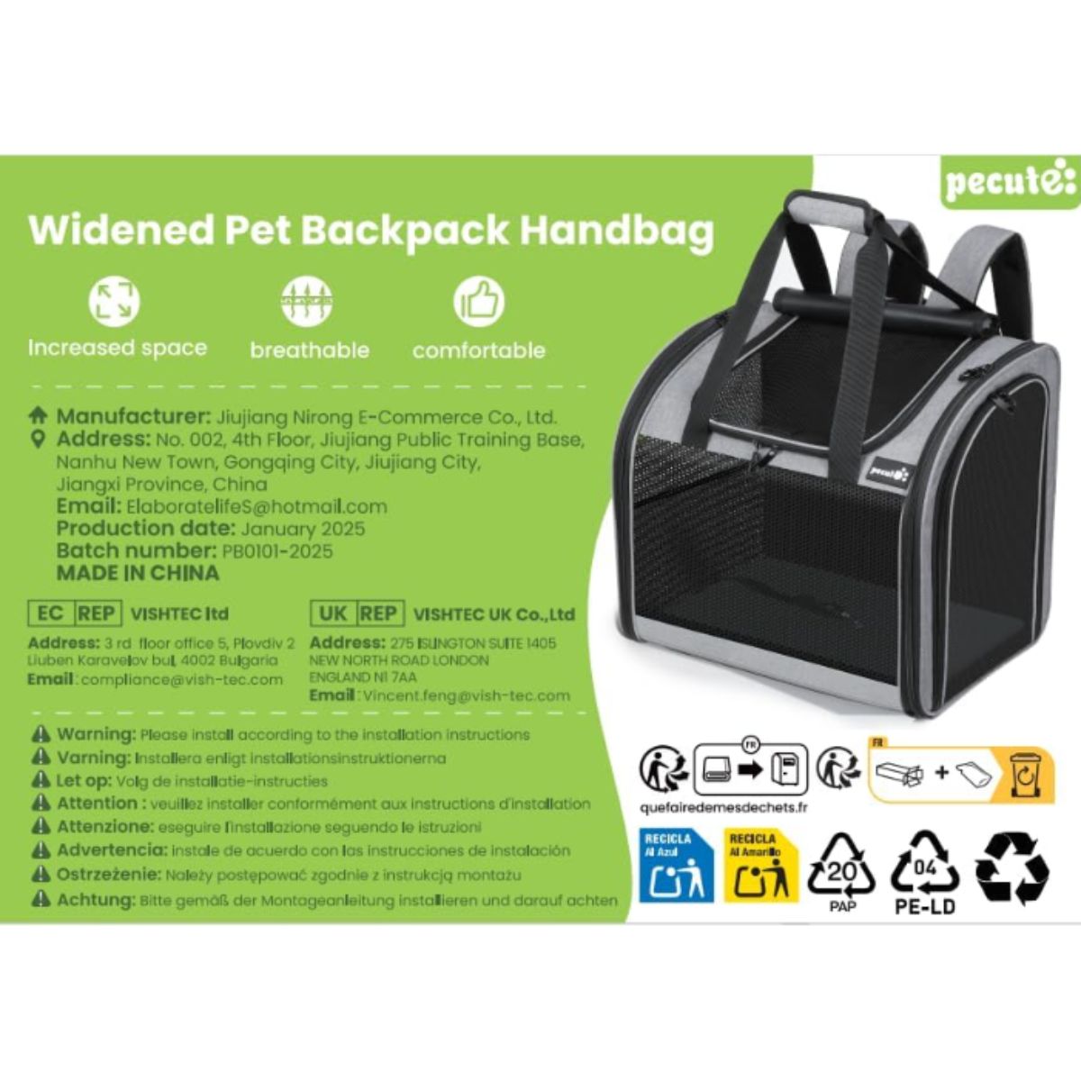 Cat backpack carrier by Pecute offers a widened interior and reinforced support for small dogs and cats. Perfect for travel and outdoor activities.