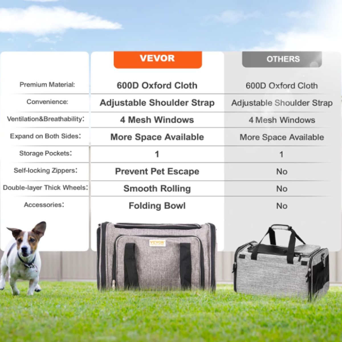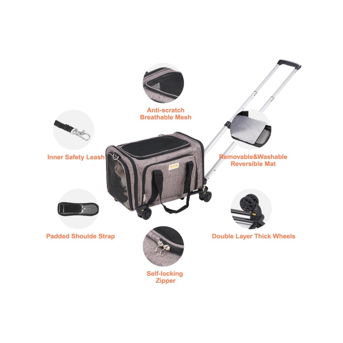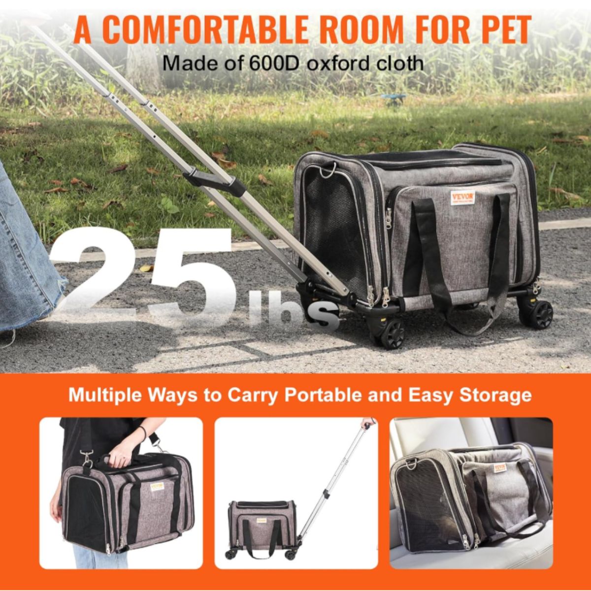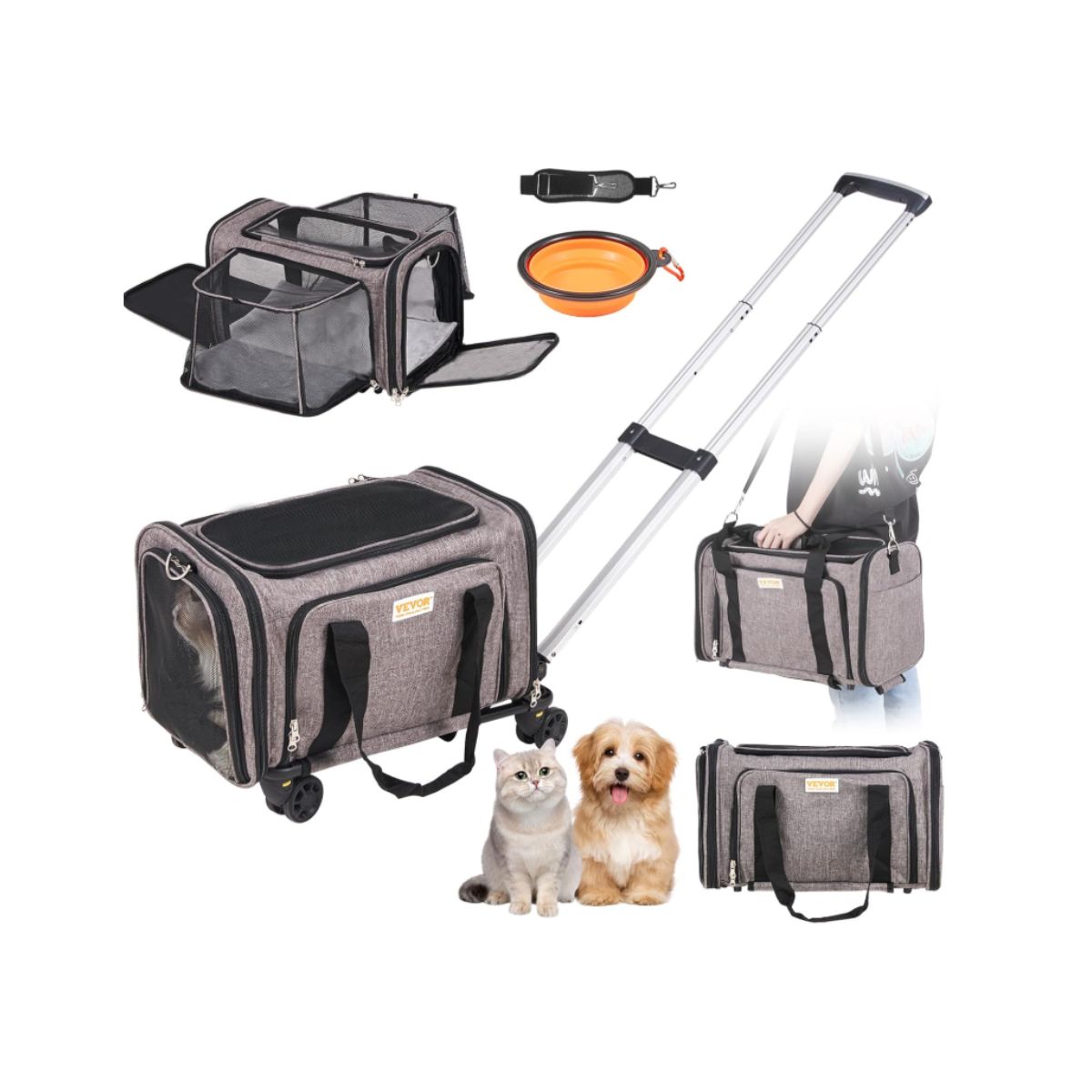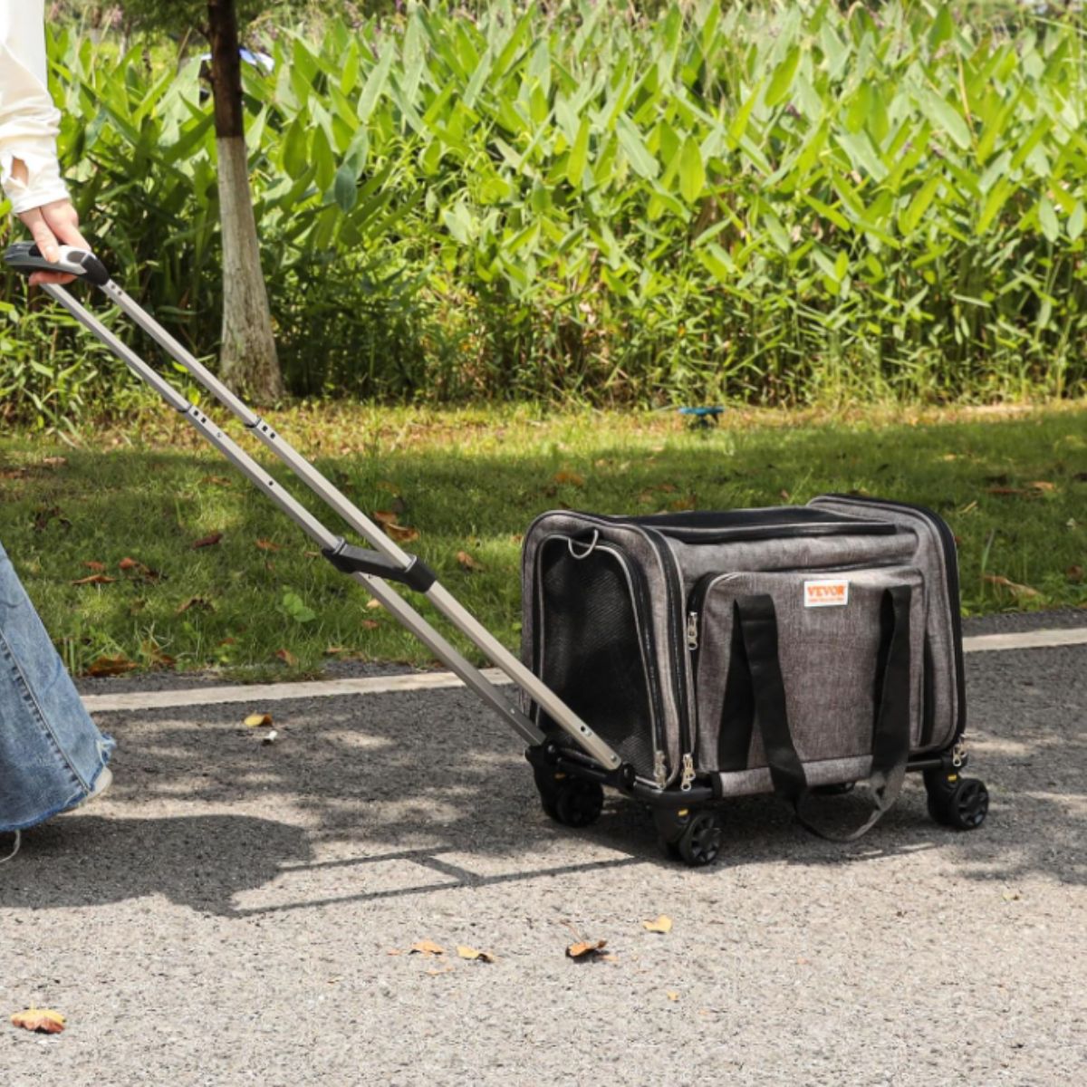 The cat carrier with wheels by Vevor offers airline-approved travel for pets up to 25 lbs. It features breathable mesh and sturdy, smooth rolling wheels.