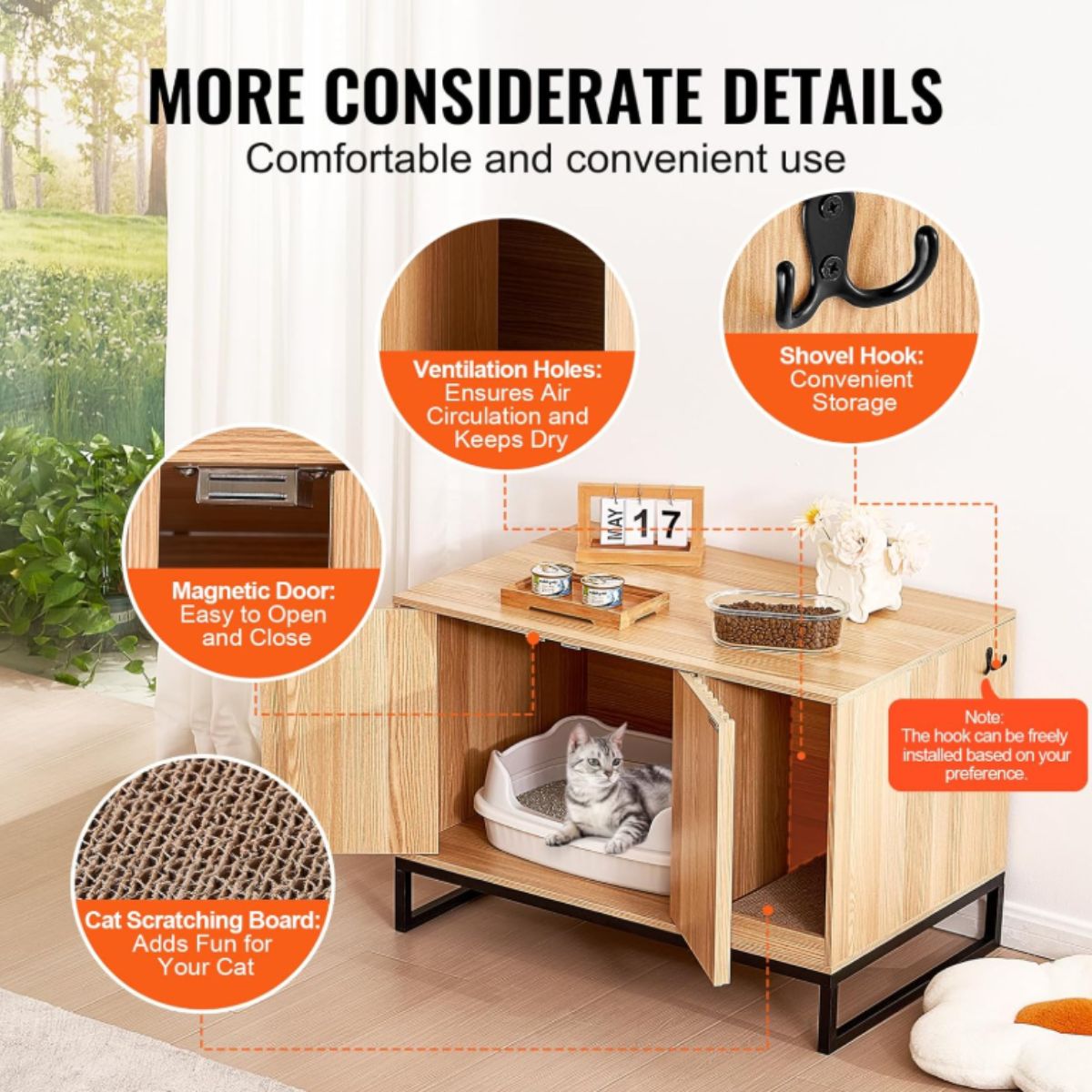 Cat Litter Box Enclosure – VEVOR Natural Wood