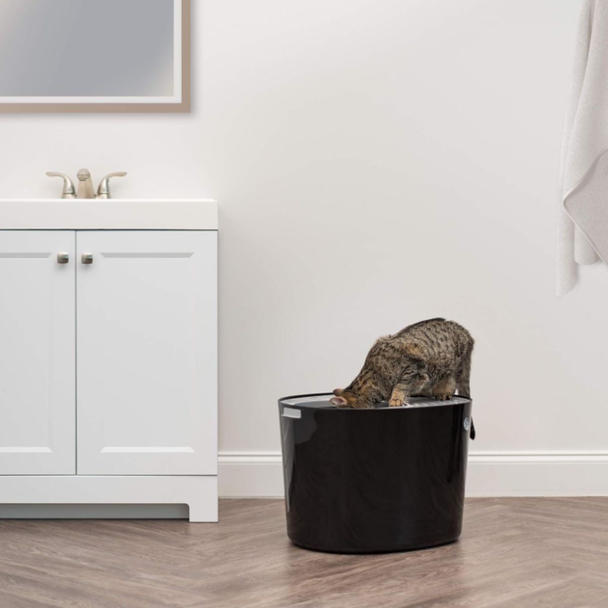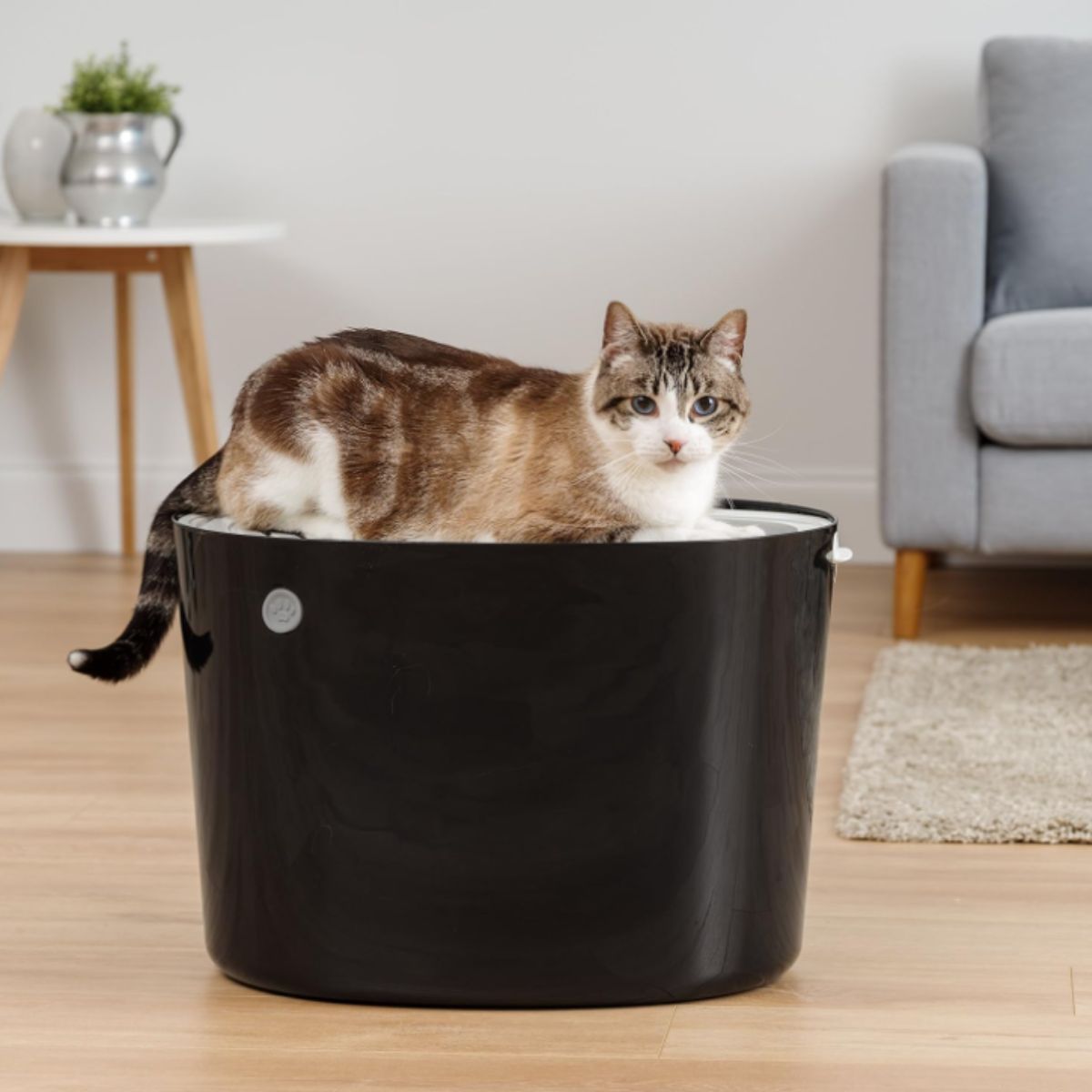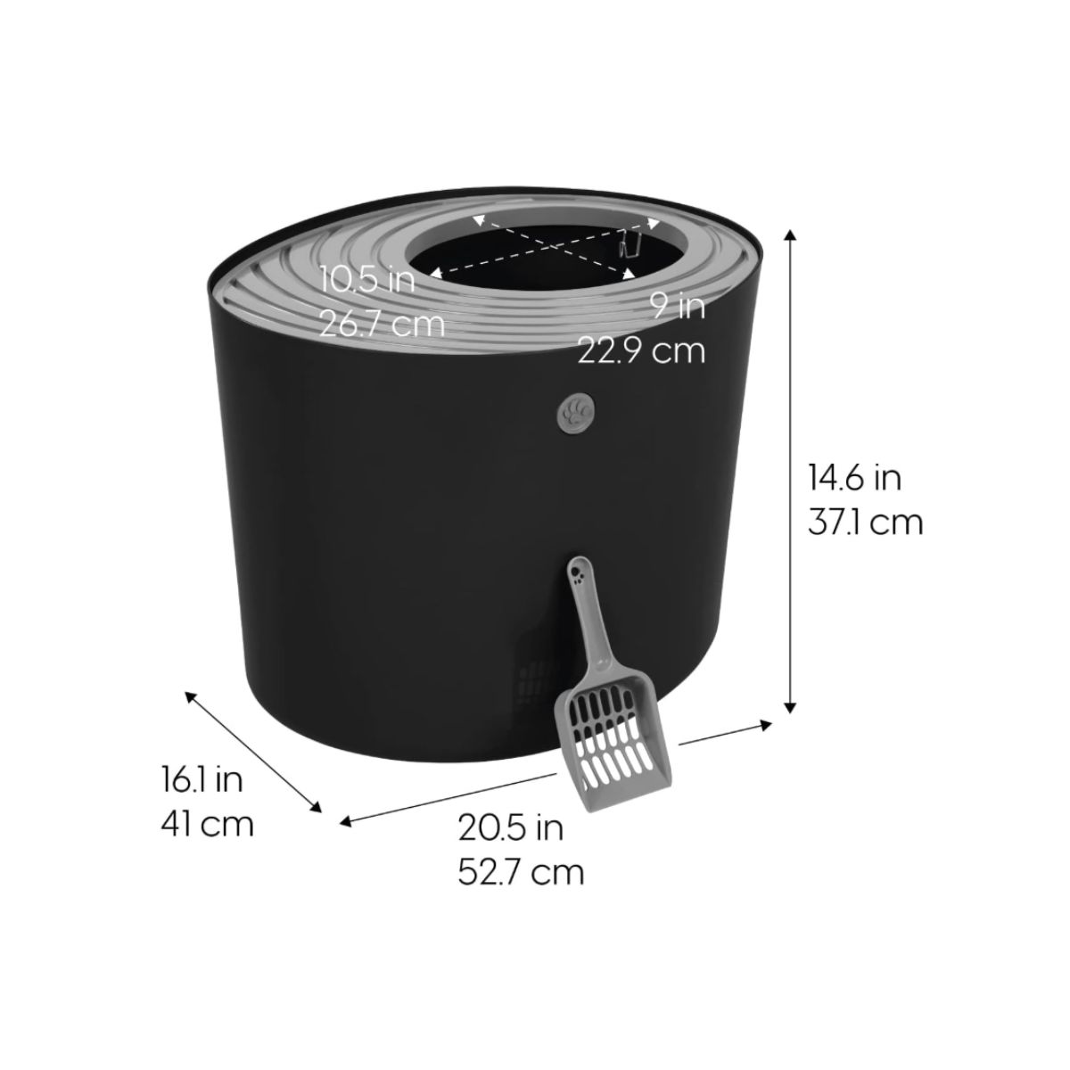The cat litter tray by Iris offers a large entrance, no odor, and reduced litter spill. Includes a convenient scoop for easy cleaning.