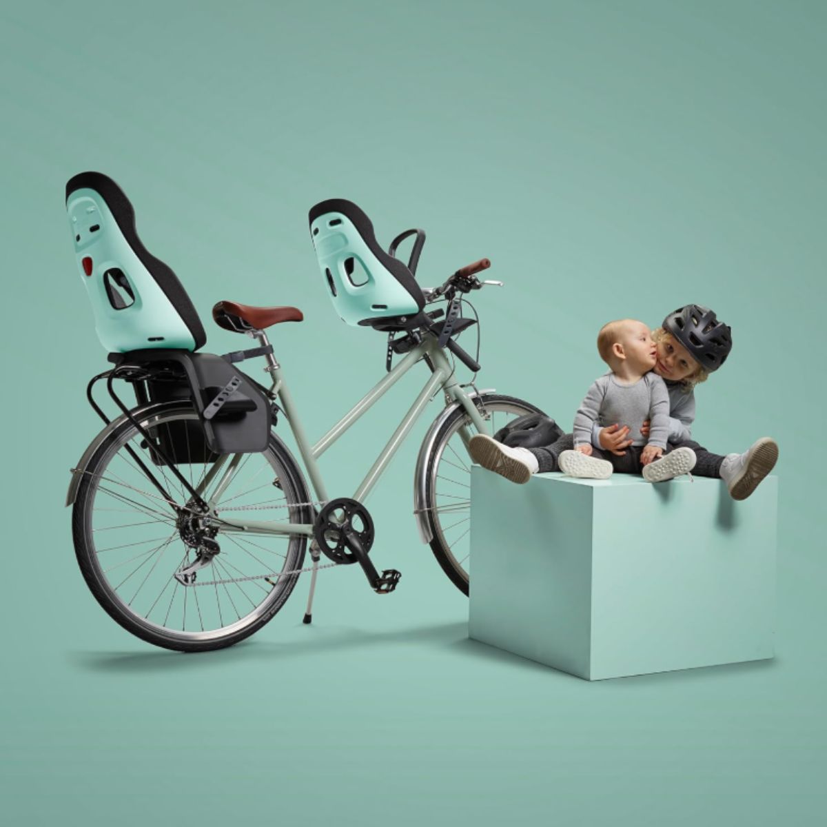 The child bike seat by Thule offers comfort and safety with its lightweight design and magnetic safety buckle. Perfect for active families.
