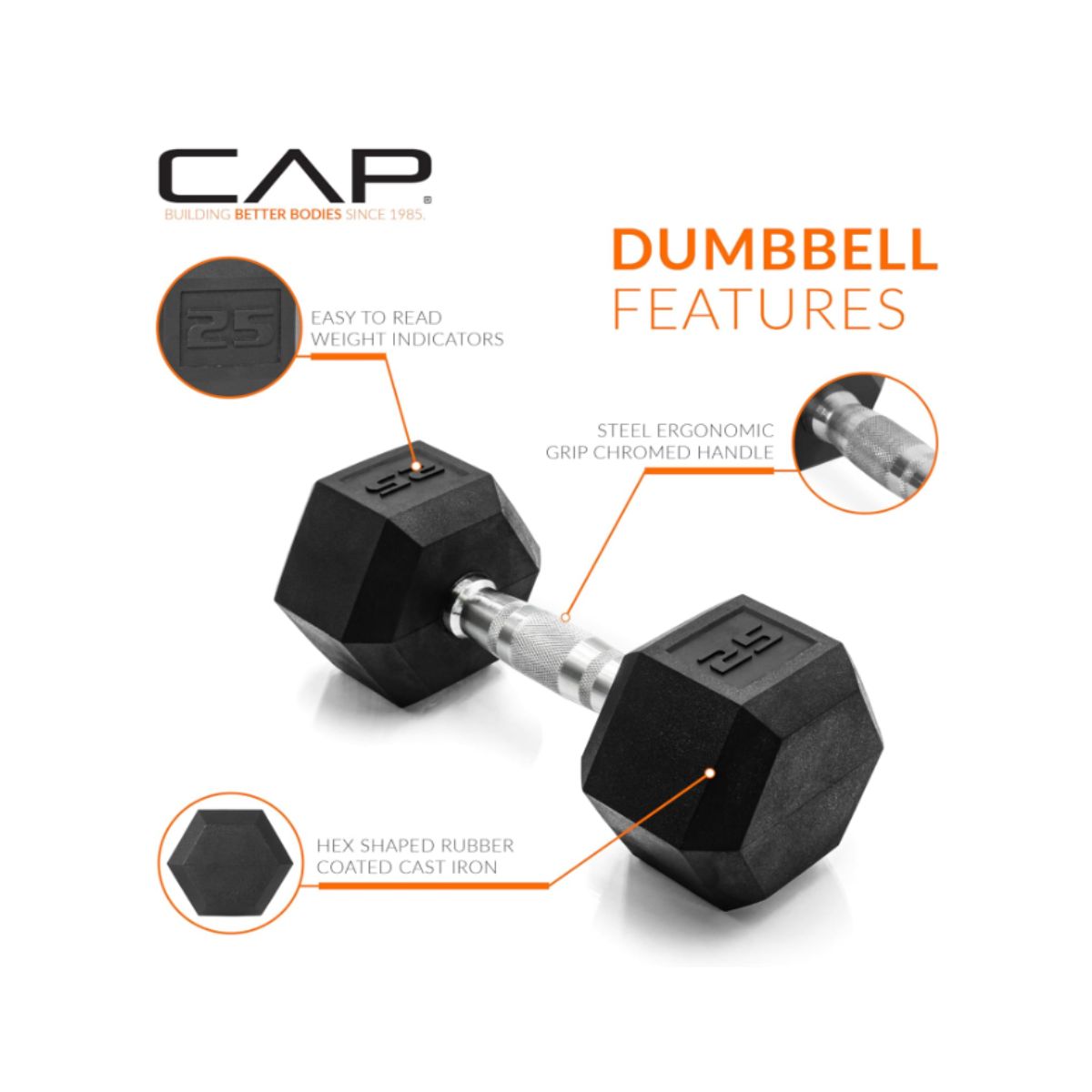 Coated Hex Dumbbells – CAP Barbell 25lb Pair