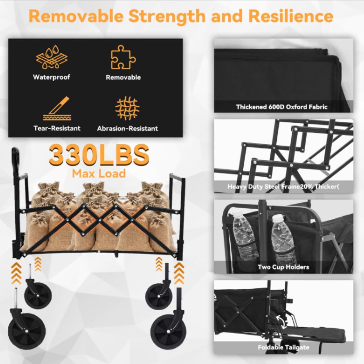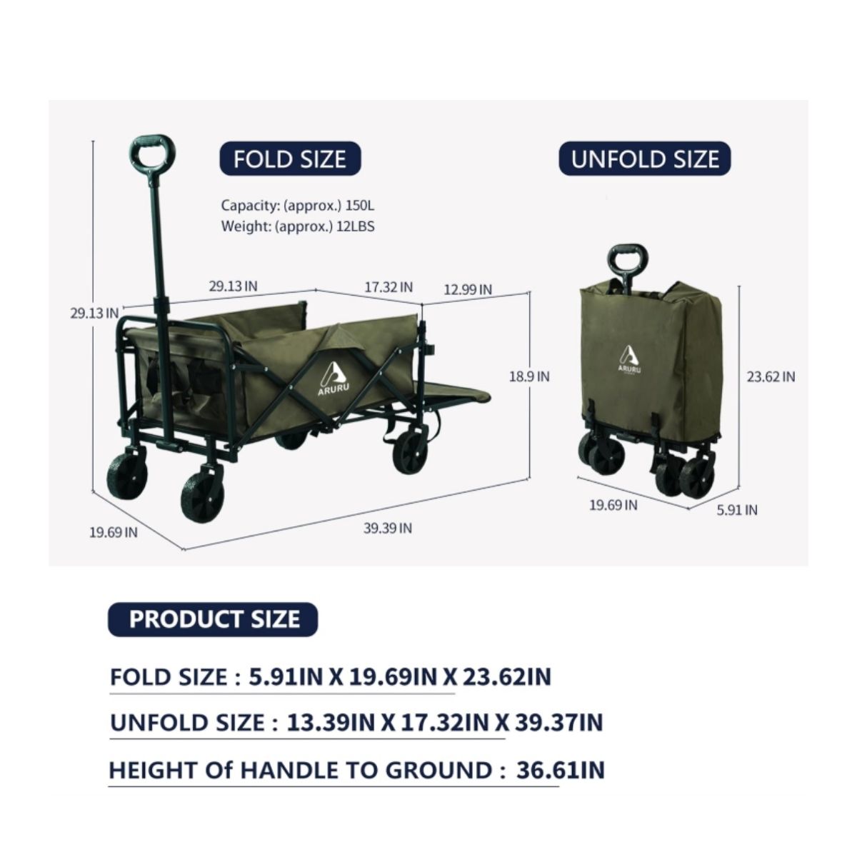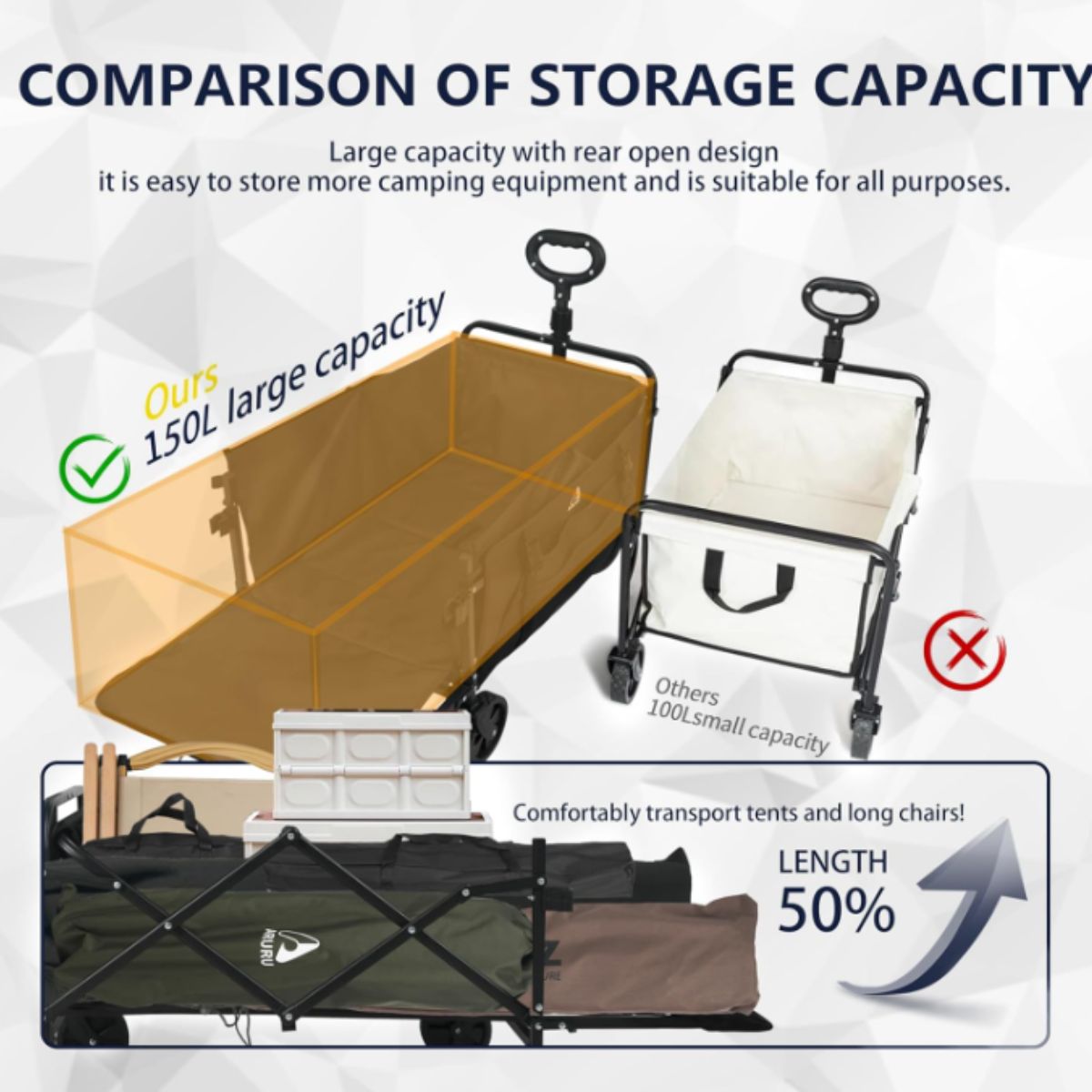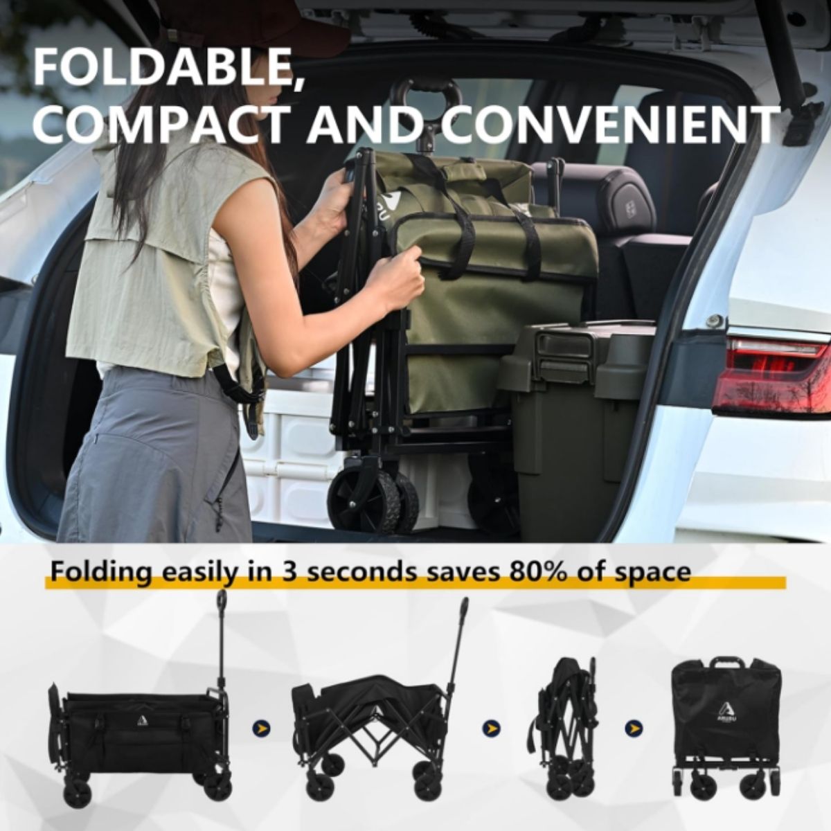This collapsible wagon by Aruru offers heavy duty performance and portability. Perfect for outdoor activities, camping, gardening, and more.