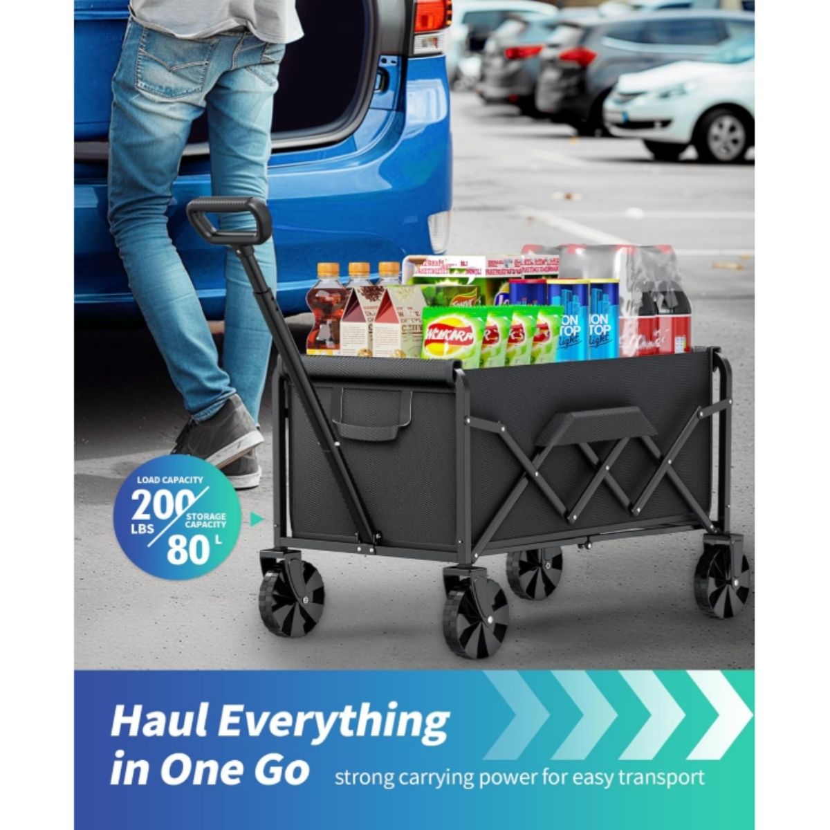 This collapsible wagon is perfect for utility, shopping, or pets. It features a strong 200lbs load capacity and folds easily for storage.