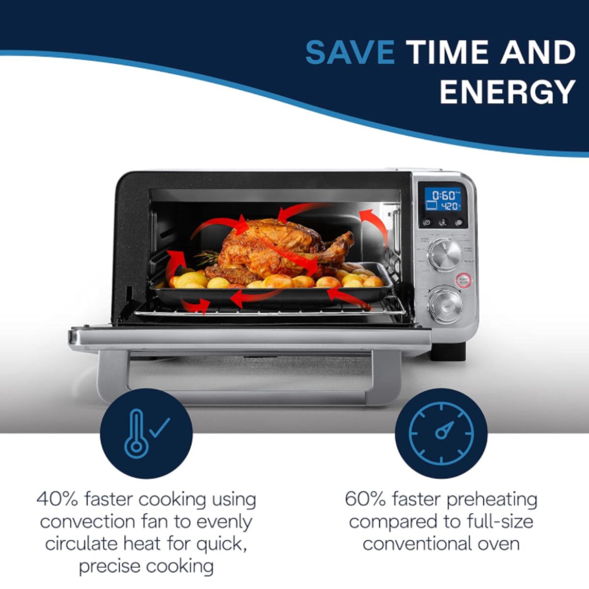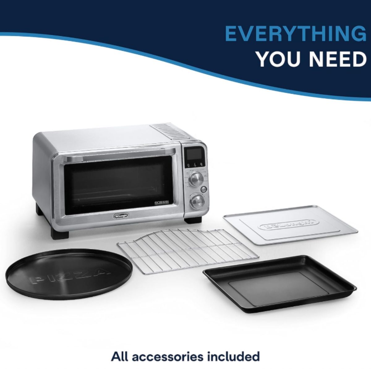 The convection toaster oven by Delonghi offers 9 cooking functions for quick, precise cooking. Ideal for baking, toasting, and roasting.