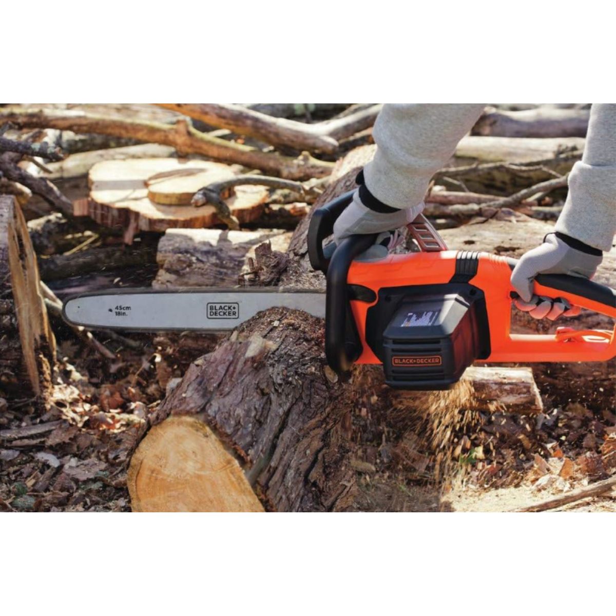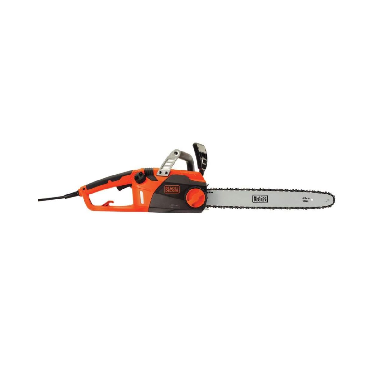 The corded chainsaw by BLACK+DECKER delivers powerful 15-amp motor performance. It features an 18-inch low-kickback bar for efficient cutting tasks.