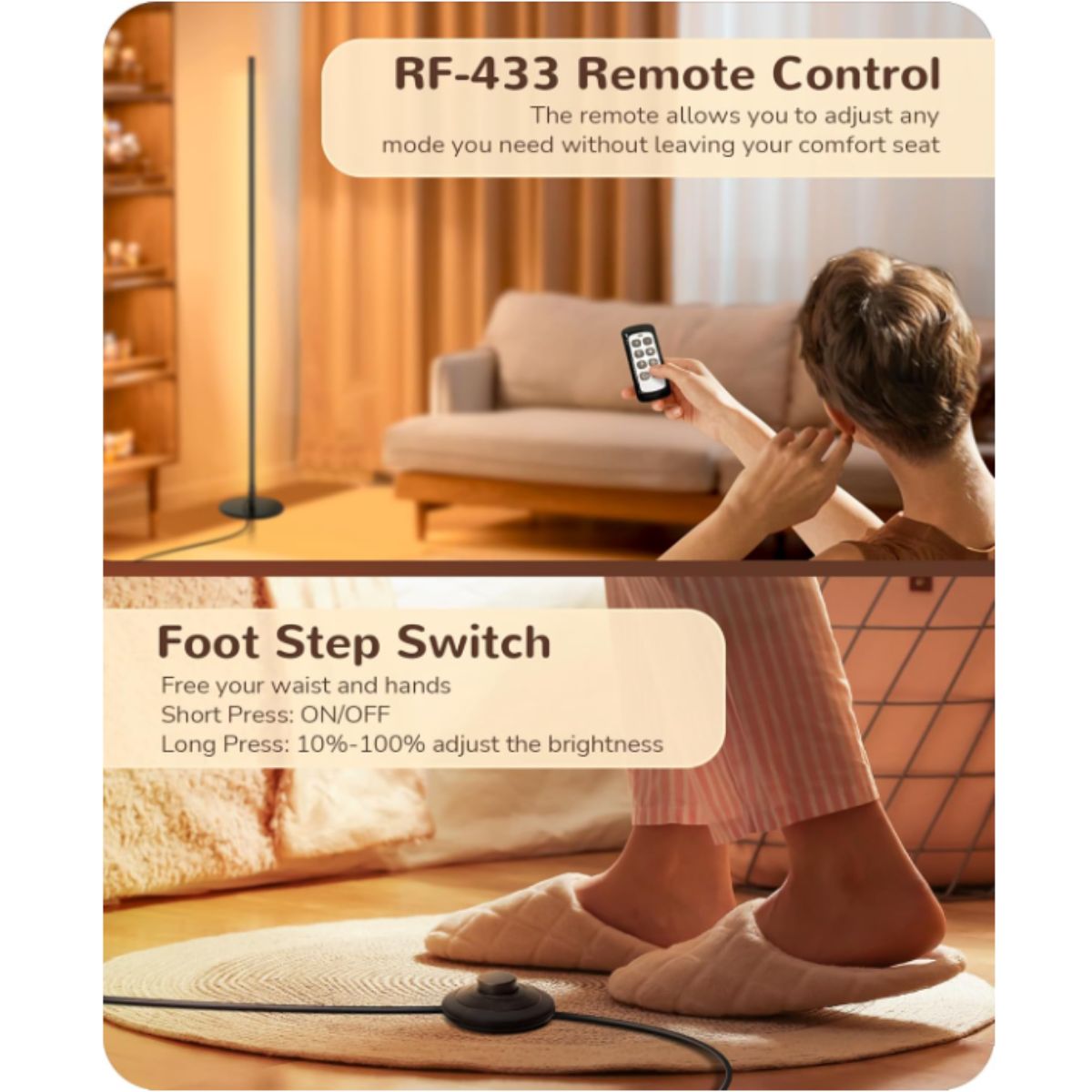 This corner floor lamp by EDISHINE offers dimmable light with 7 colour temperatures and remote control for a perfect ambiance in any room.