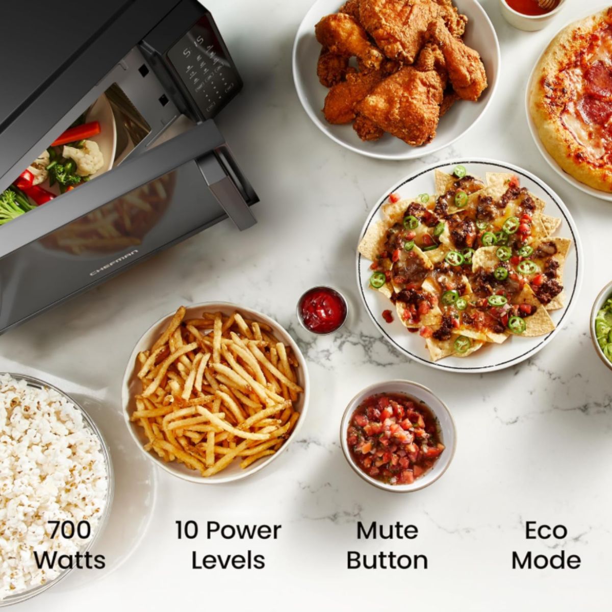 The countertop microwave oven by Chefman offers quick and easy cooking with 700 watts and 10 power levels. Ideal for any Canadian kitchen.