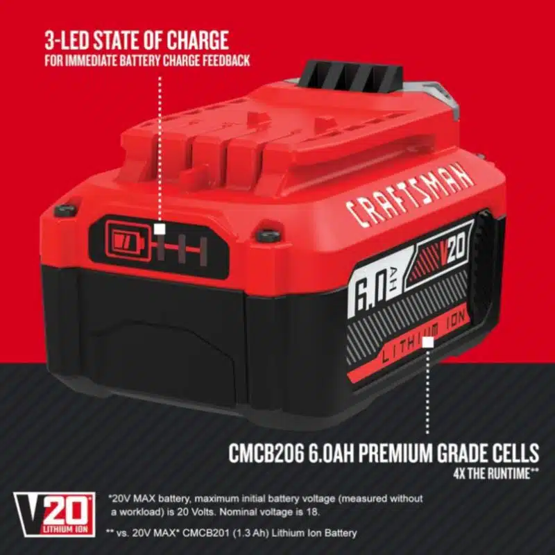 Experience workshop excellence with CRAFTSMAN 20-V 6-Ah Battery for Cordless Tools. Engineered for solid handling and elegant results, this Craftsman tool delivers precision and power. simplifies your routine with every use.