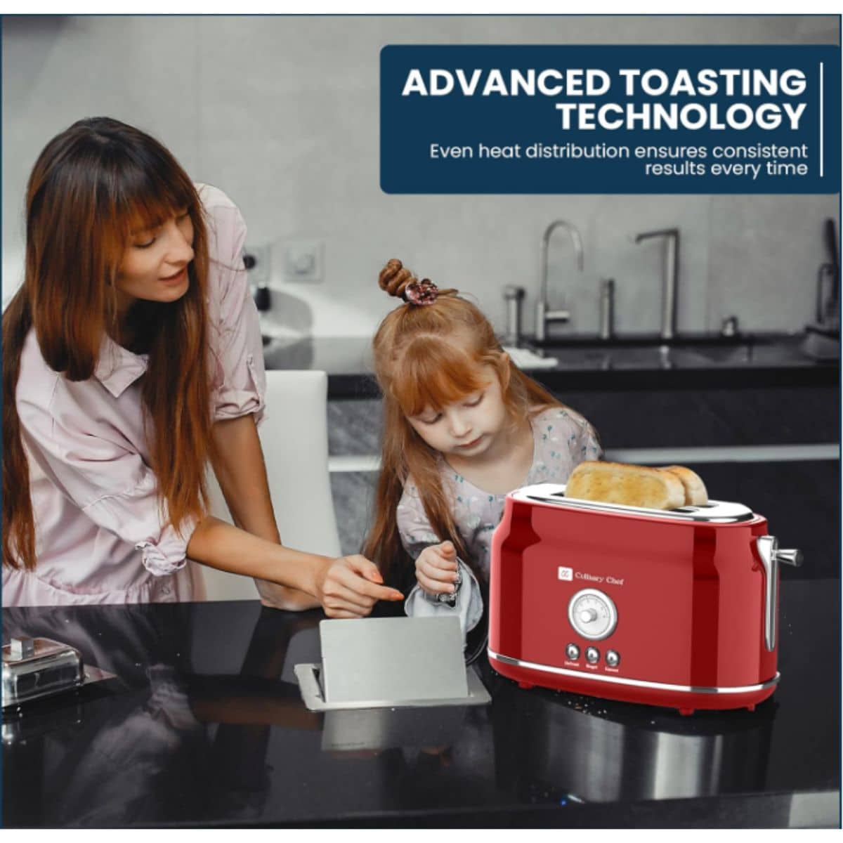 Culinary Chef 2 Slice Toaster with Extra Wide Slots for Toast, Bagels, and Bread – Retro Toaster – Red