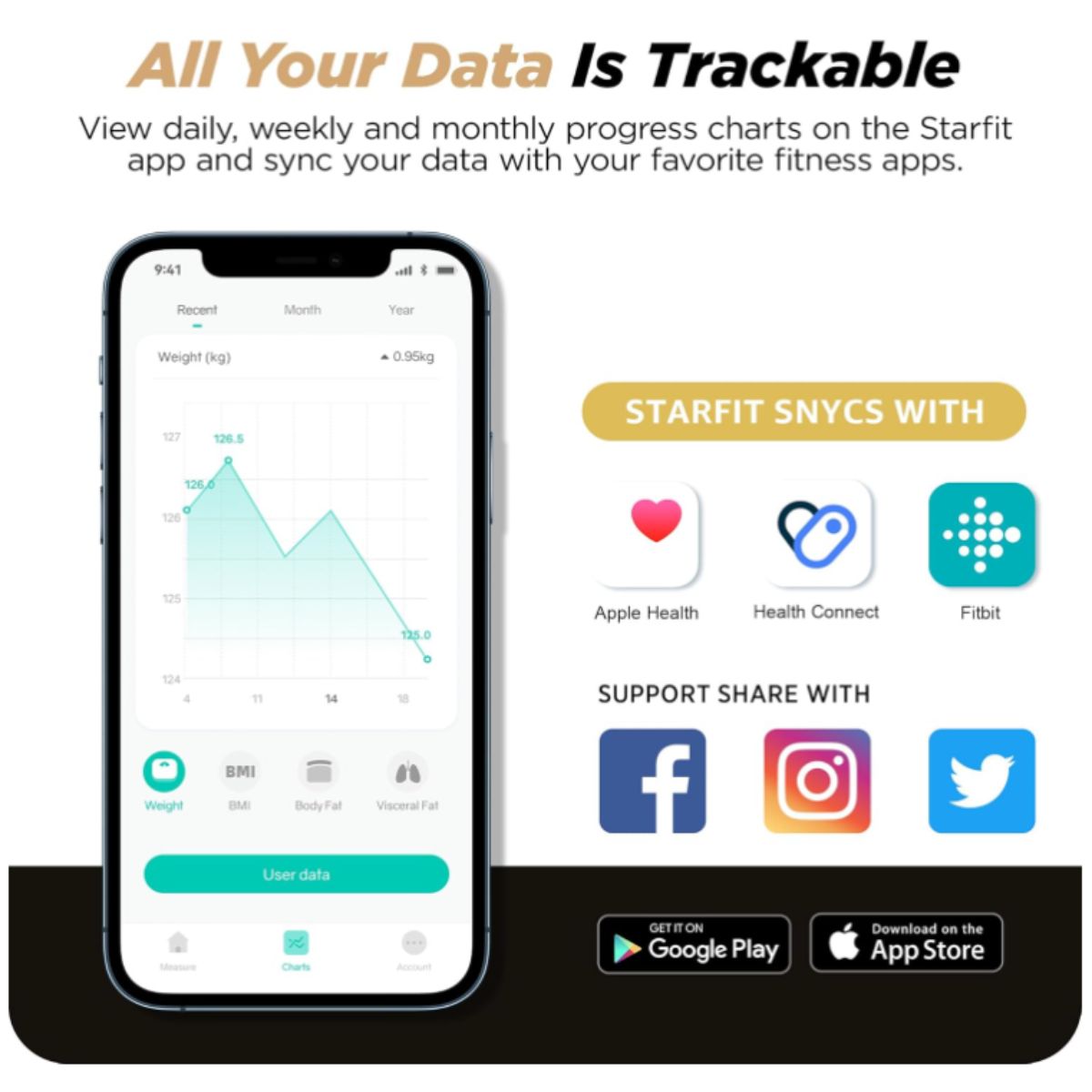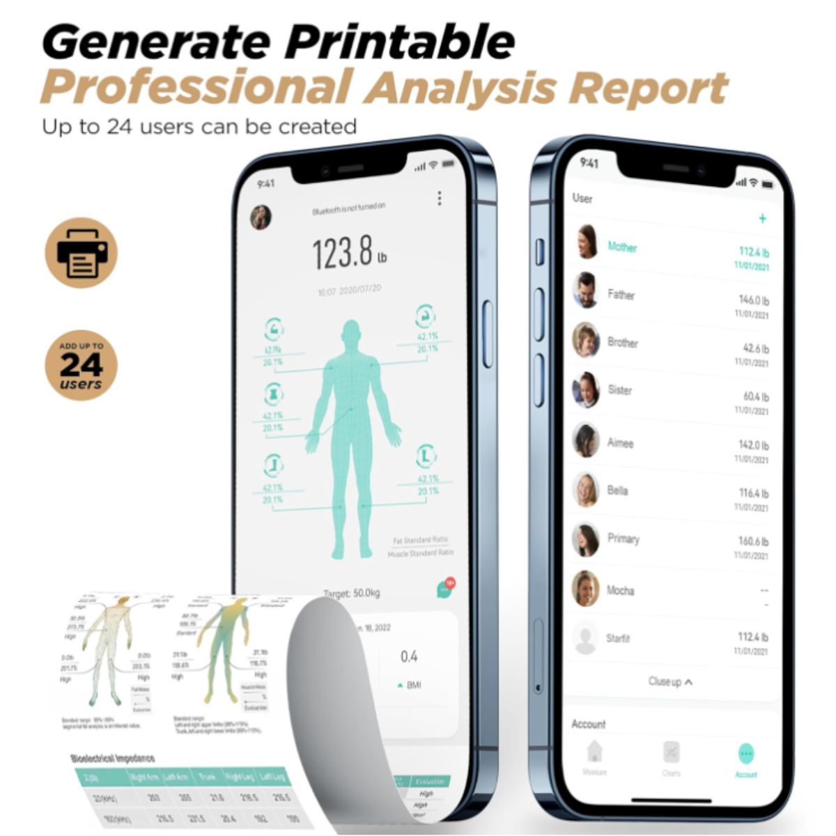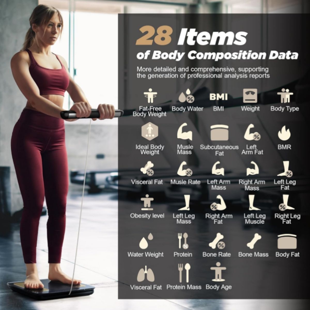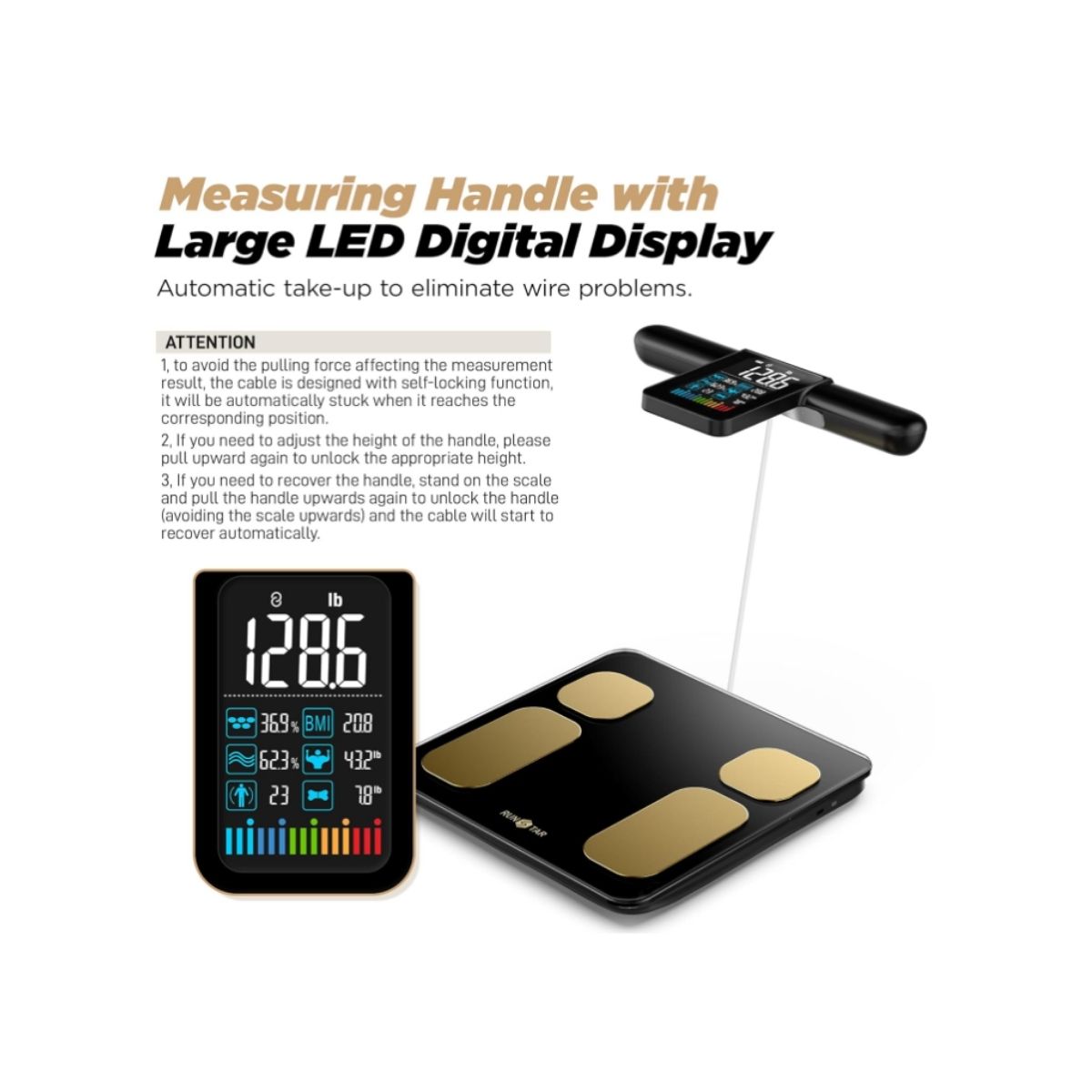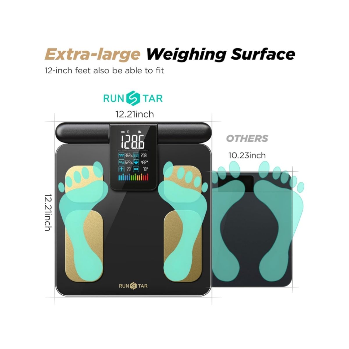Digital body fat scale by Runstar offers precise BMI and body composition measurements with 8 electrodes. Perfect for family use and smart fitness tracking.
