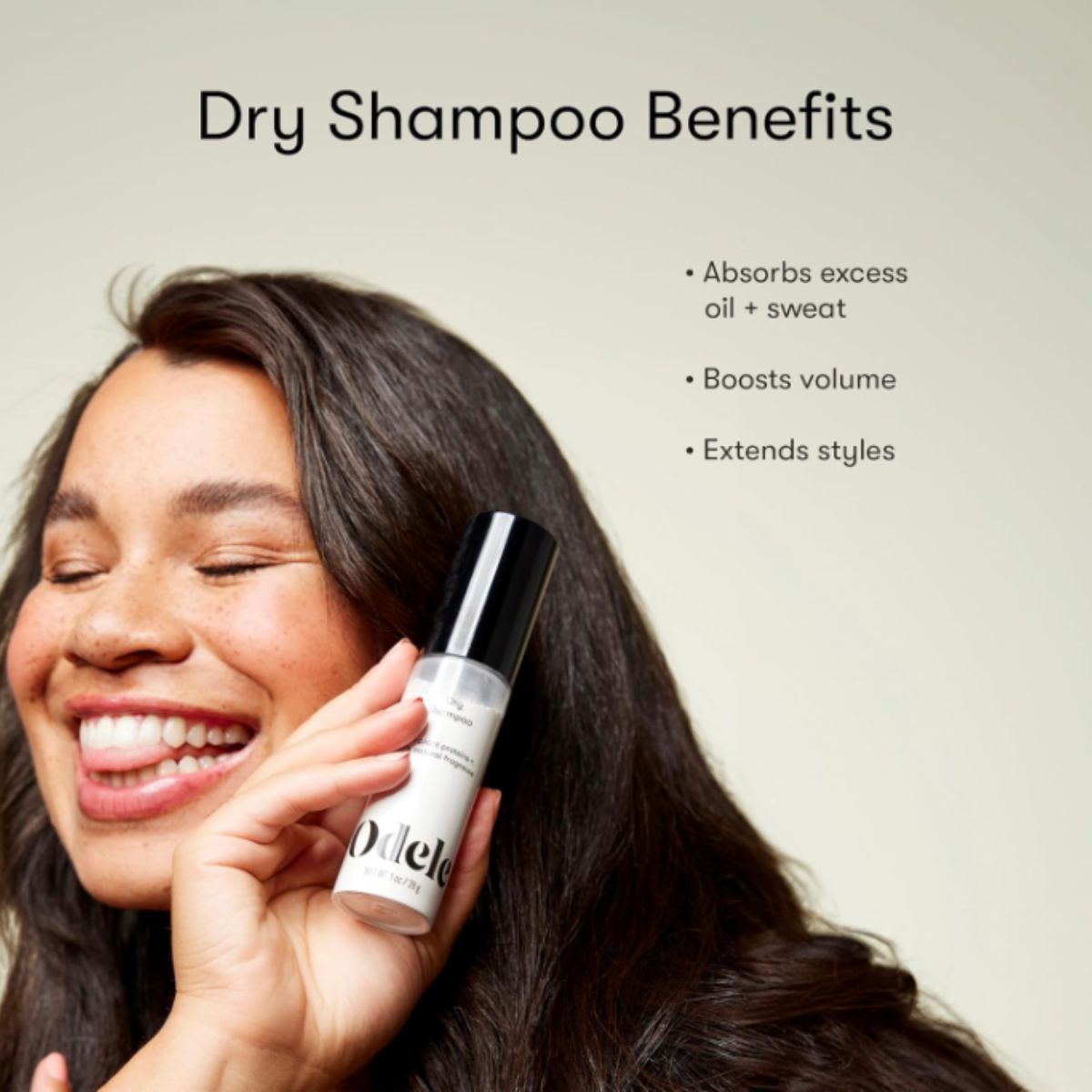 Dry shampoo by ODELE absorbs oil and revives volume for all hair types. Perfect for quick freshness and added volume.