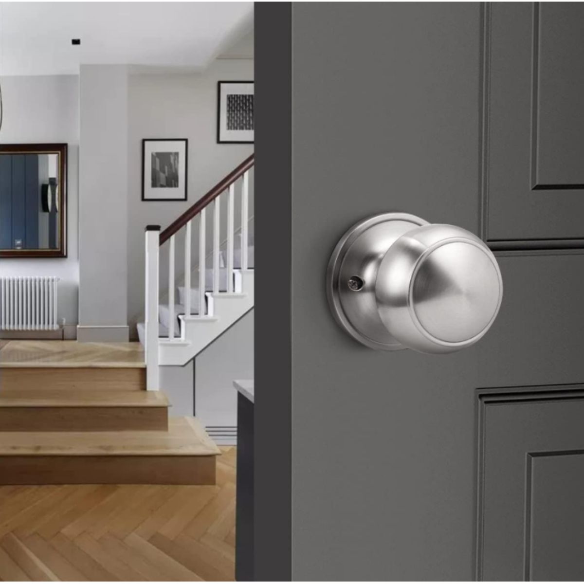 Dummy door handles by Gobrico offer a satin nickel finish for charming interior doors. These non-turning handles are easy to install and durable.
