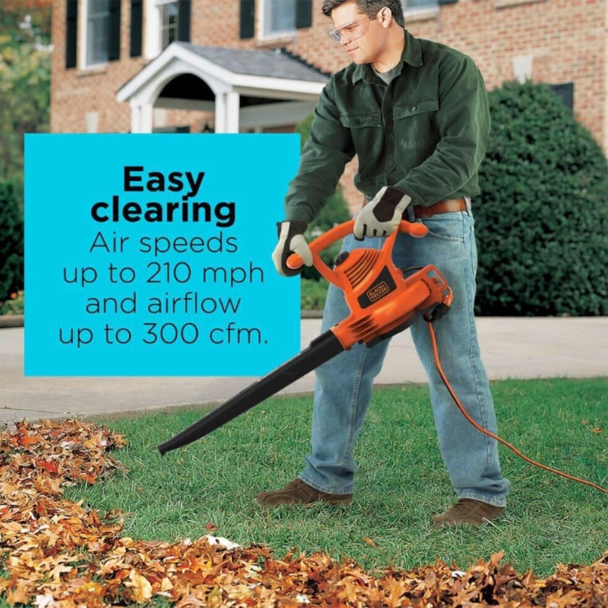 Electric leaf blower by BLACK+DECKER offers powerful blowing, vacuuming, and mulching in one tool. Perfect for quick and efficient yard maintenance.