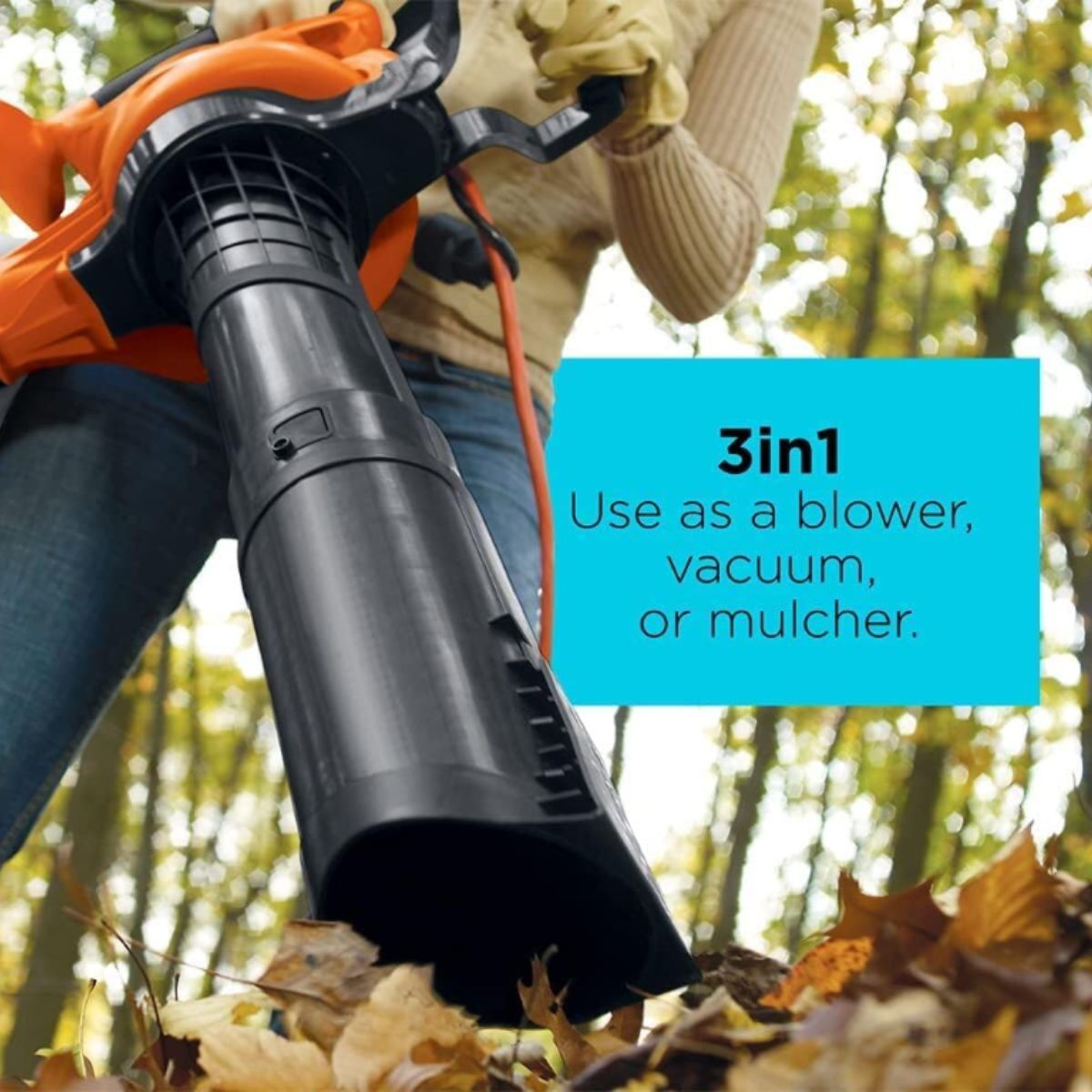 Electric leaf blower by BLACK+DECKER offers 3-in-1 blower, vacuum, and mulcher functions. Perfect for efficient yard clean-up all season long.