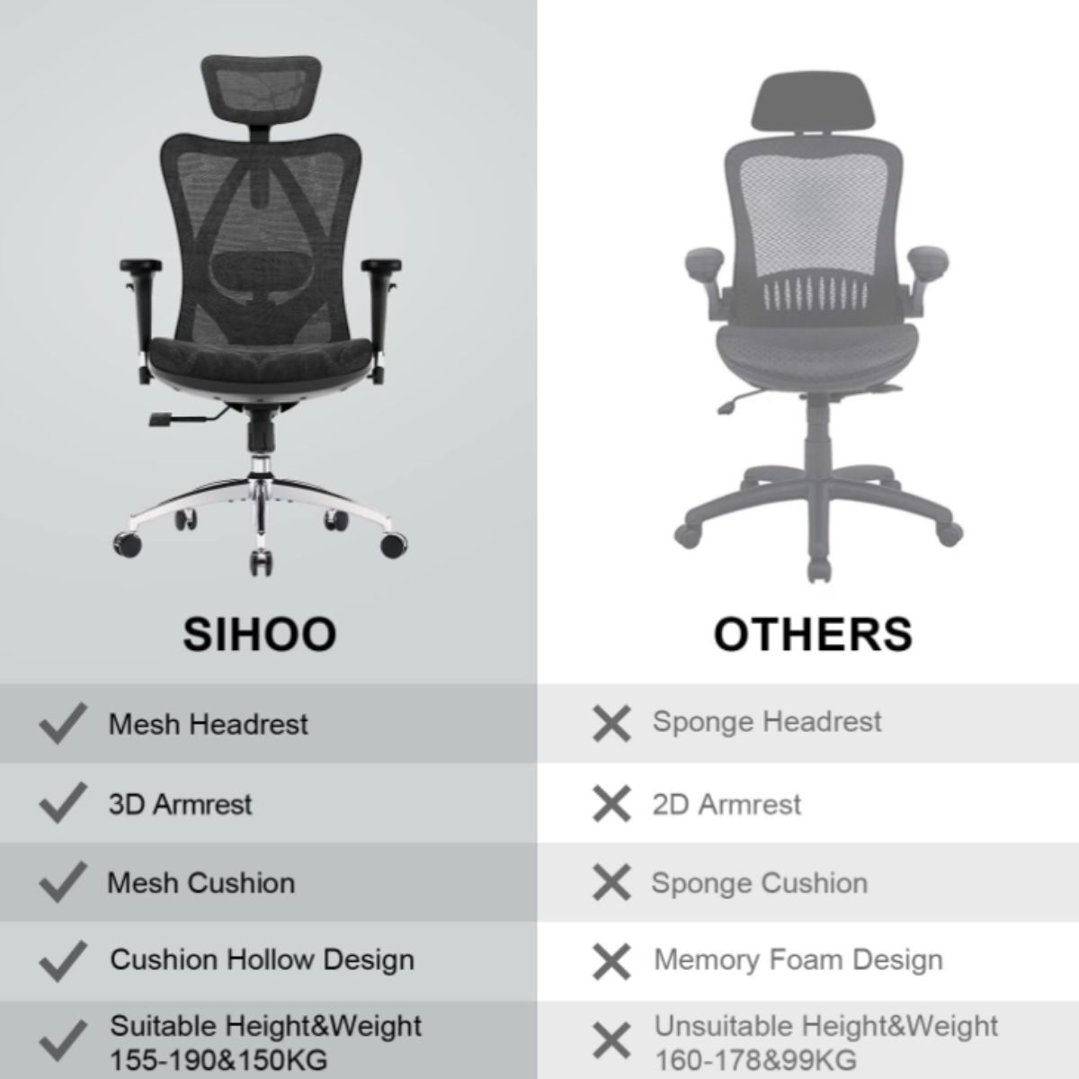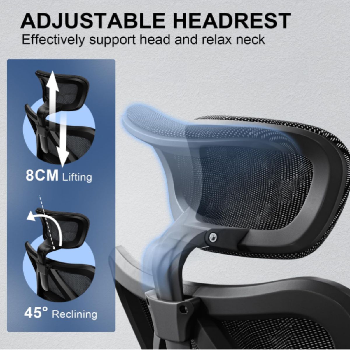 Ergonomic office chair by Sihoo offers adjustable headrest and lumbar support for all-day comfort. Perfect for home or professional use.