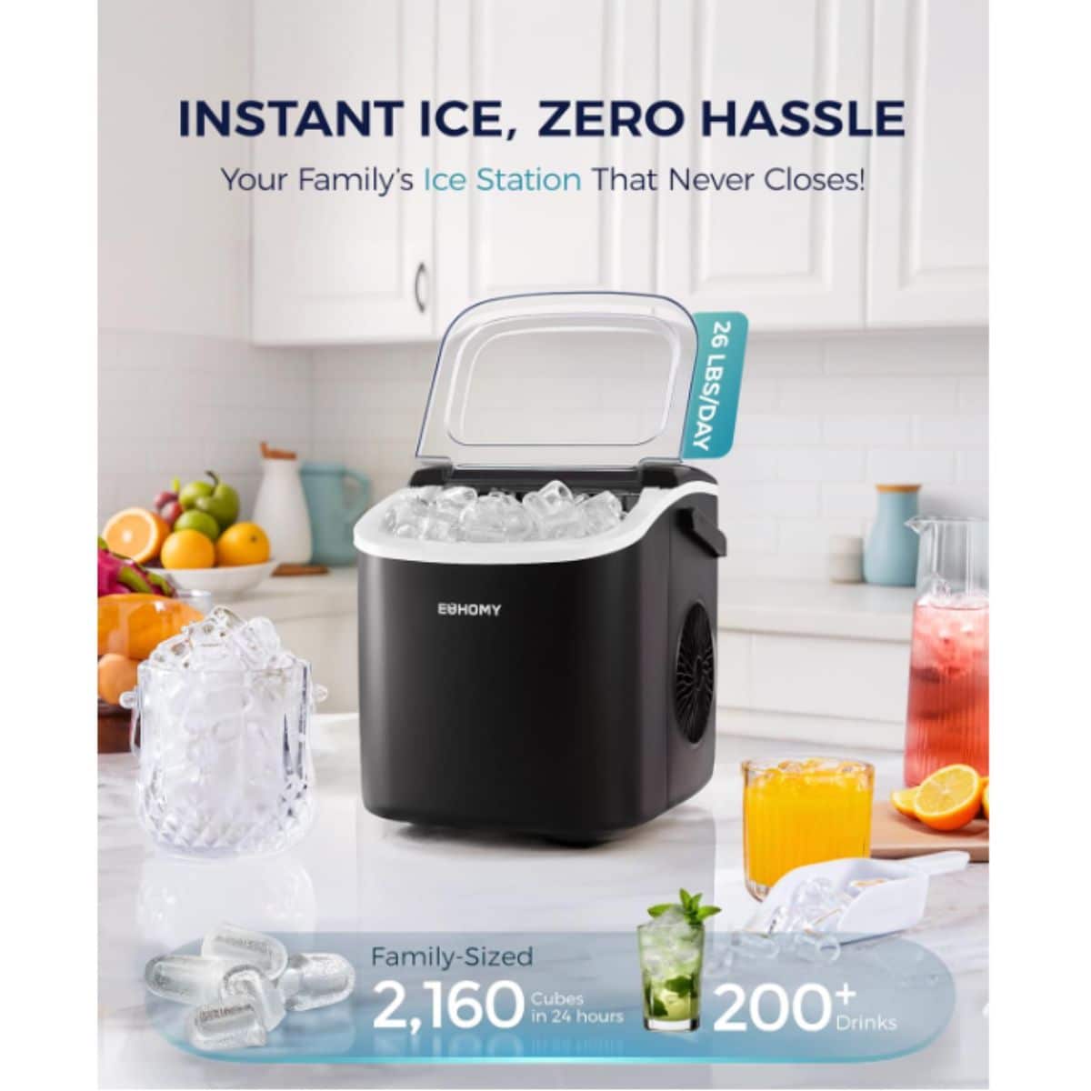 Discover home excellence with EUHOMY Countertop Ice Maker Machine with Handle, 26lbs in 24Hrs, 9 Ice Cubes Ready in 6 Mins, Auto-Cleaning Portable Ice Maker with Basket and Scoop, for Home/Kitchen/Camping/RV. (Black). Euhomy crafted this smooth appliance to simplify your tasks while delivering polished performance every time. delivers professional results at home with every use.
