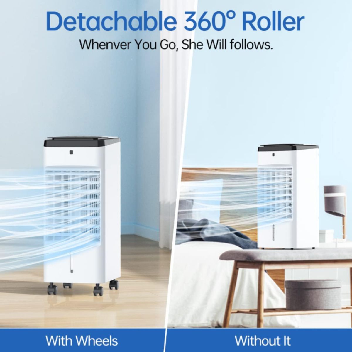Evaporative cooler by SEEPER offers fast cooling and 3-in-1 air conditioning. Perfect for small rooms with remote control and easy portability.