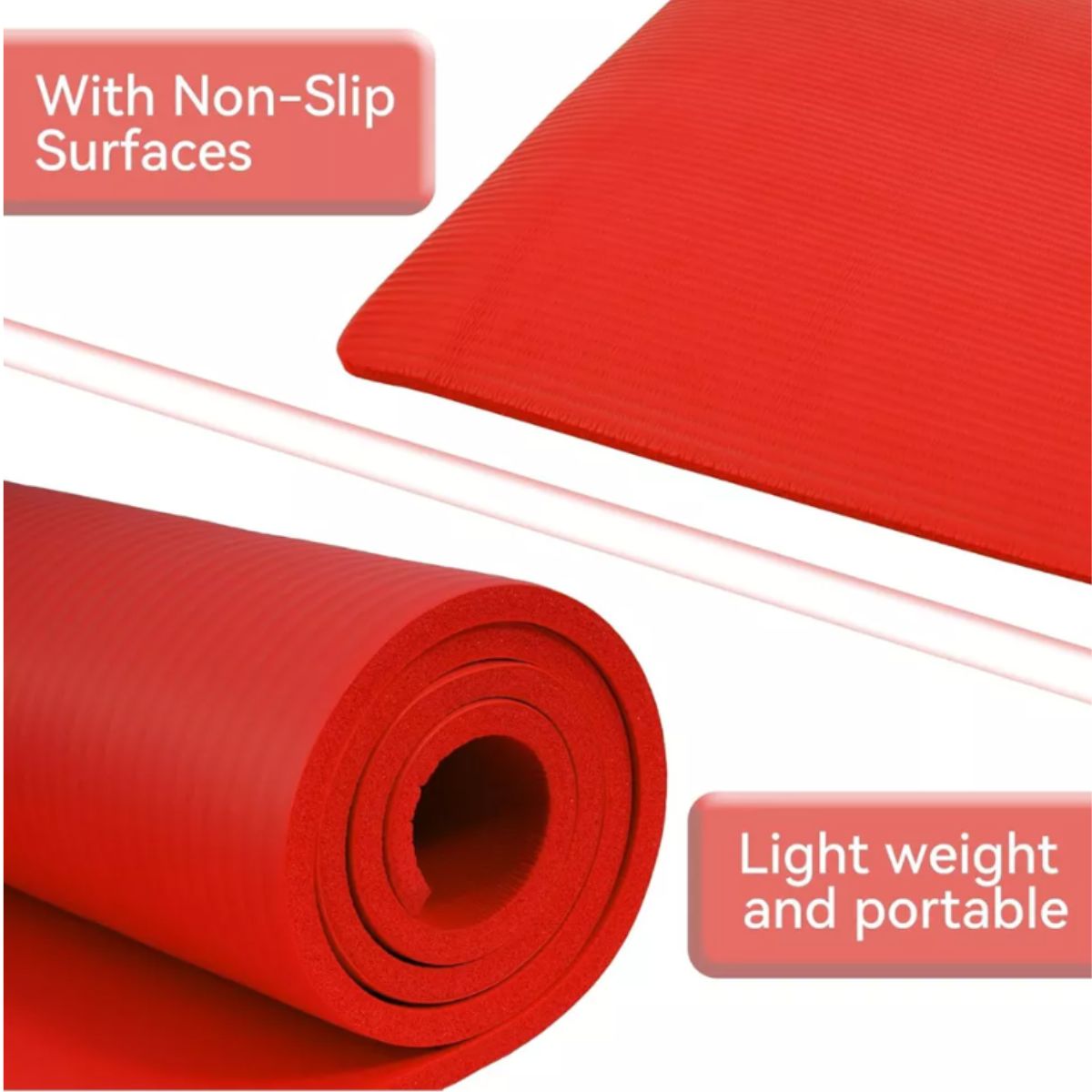 Exercise Yoga Mat – Fitvids Red with Carrying Strap
