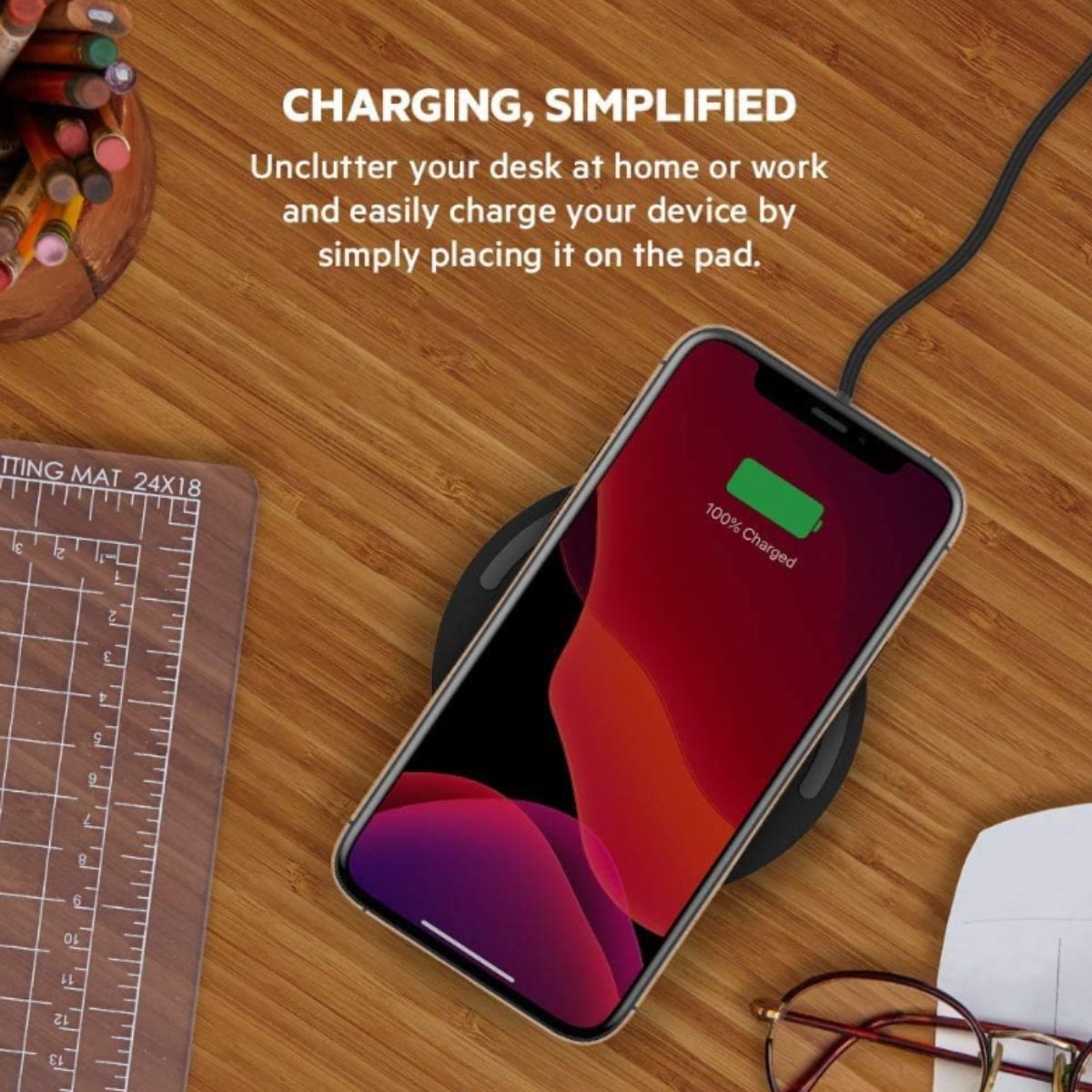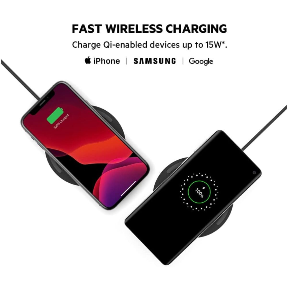 The fast wireless charger pad by Belkin offers rapid charging for Qi-enabled devices. Enjoy clutter-free charging with a sleek black finish.