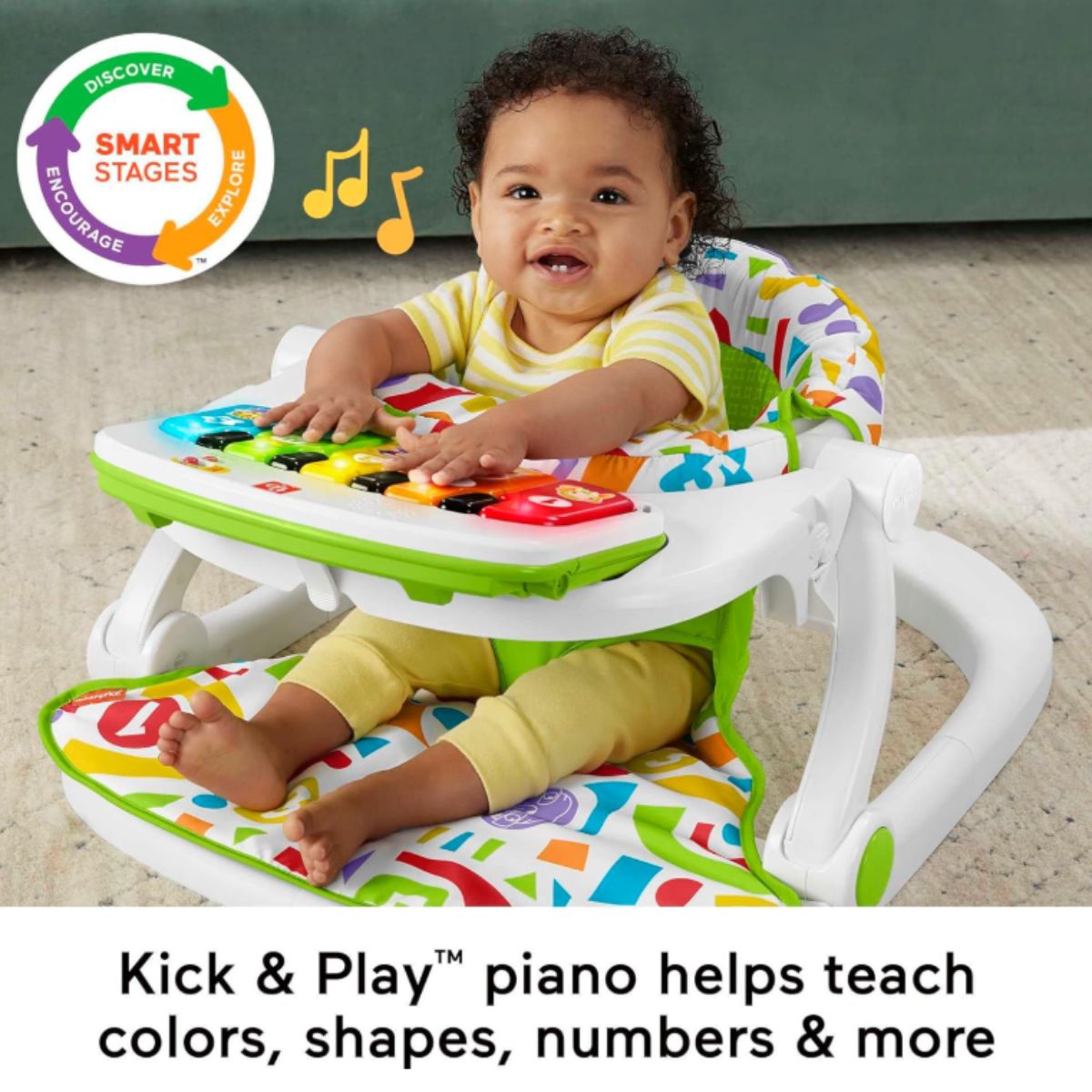 The Fisher-Price Portable Baby Chair Kick & Play Deluxe Seat offers fun with a piano learning toy and a convenient snack tray. Ideal for infants to toddlers, it provides comfort and entertainment.