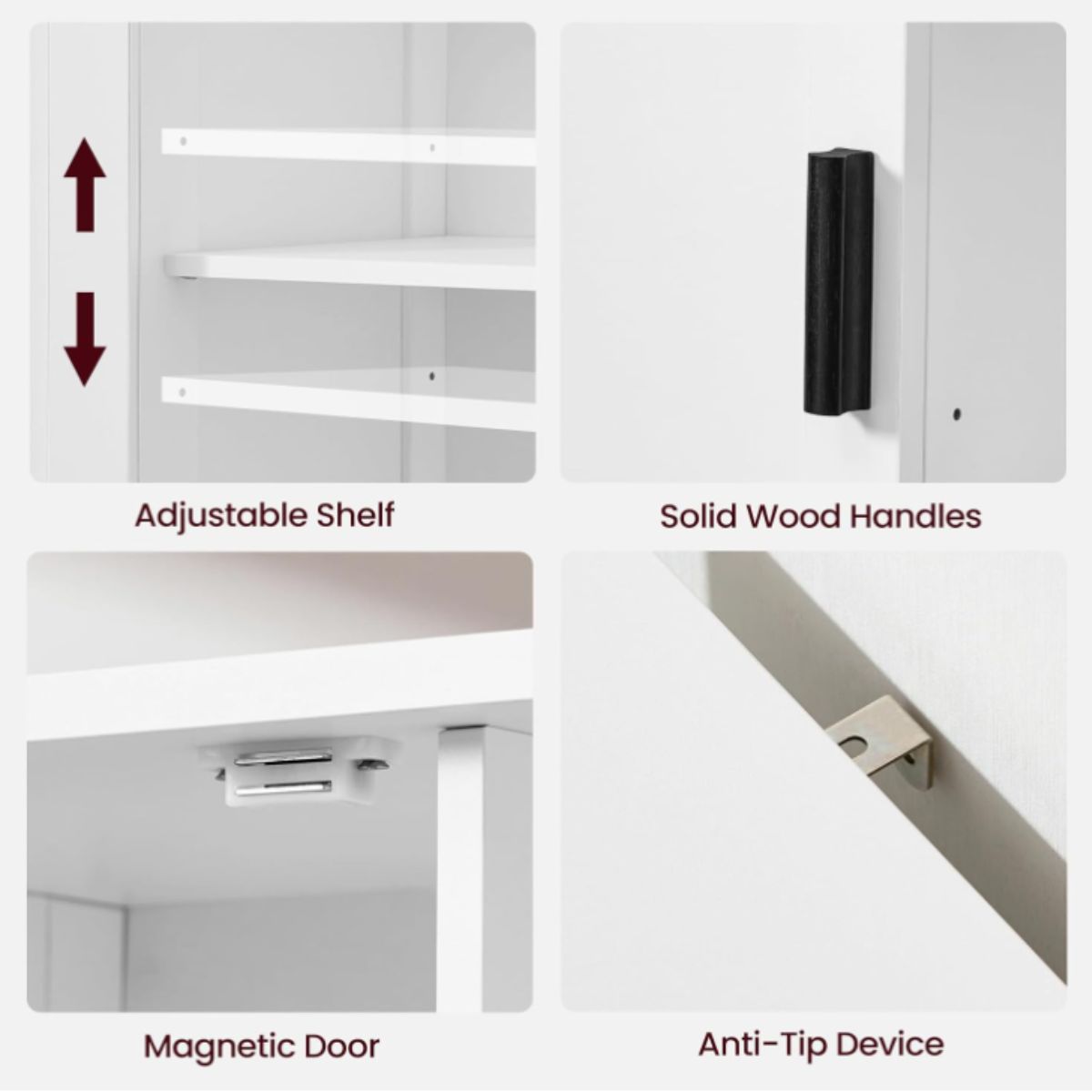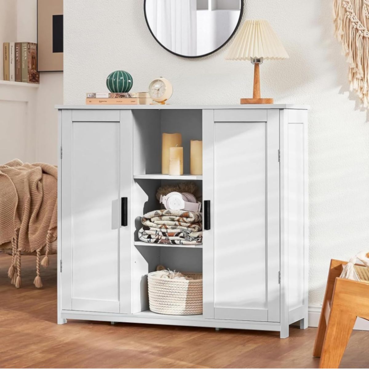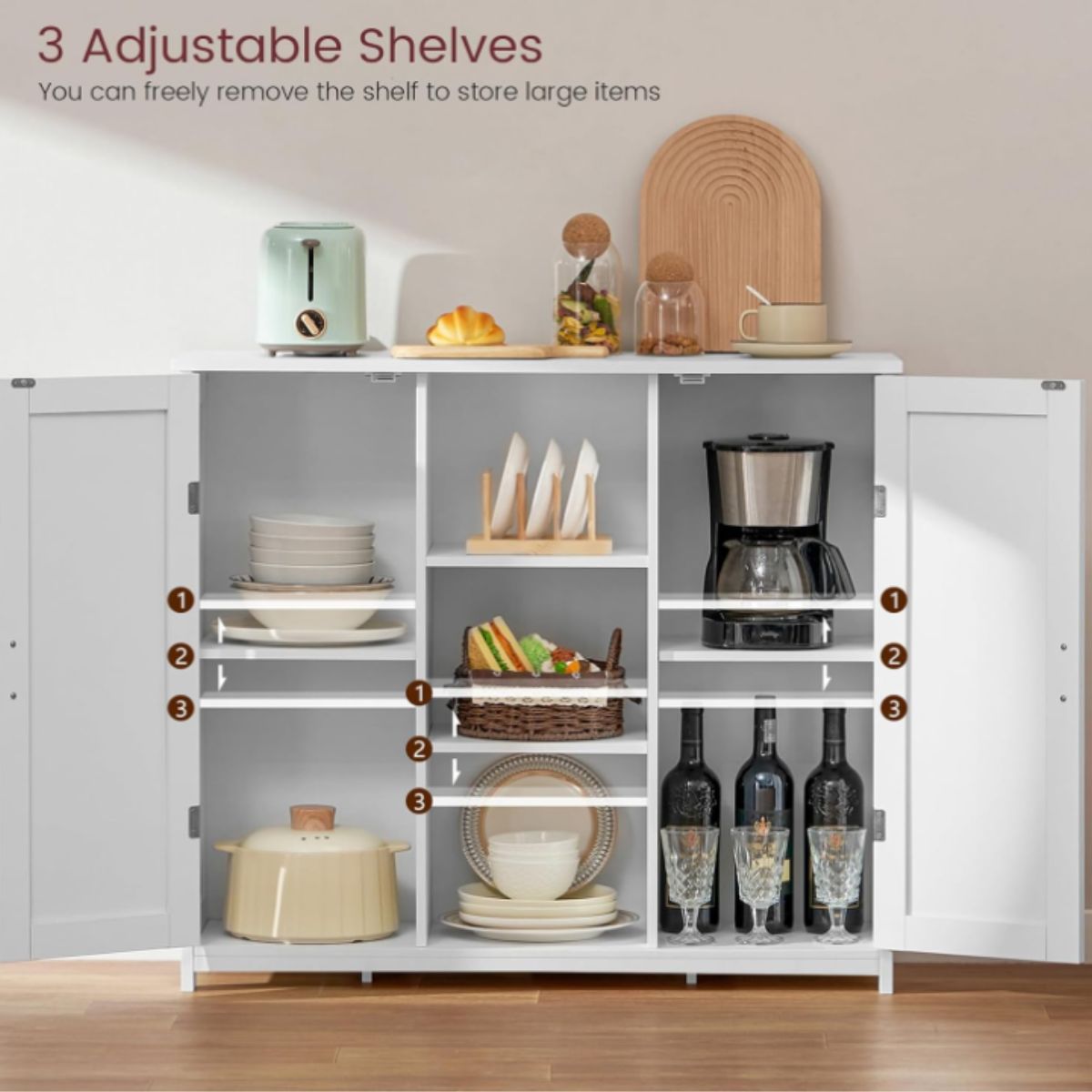 Floor storage cabinet by Iwell provides stylish and practical storage with 2 doors and 2 open shelves. Perfect for kitchen or living room.
