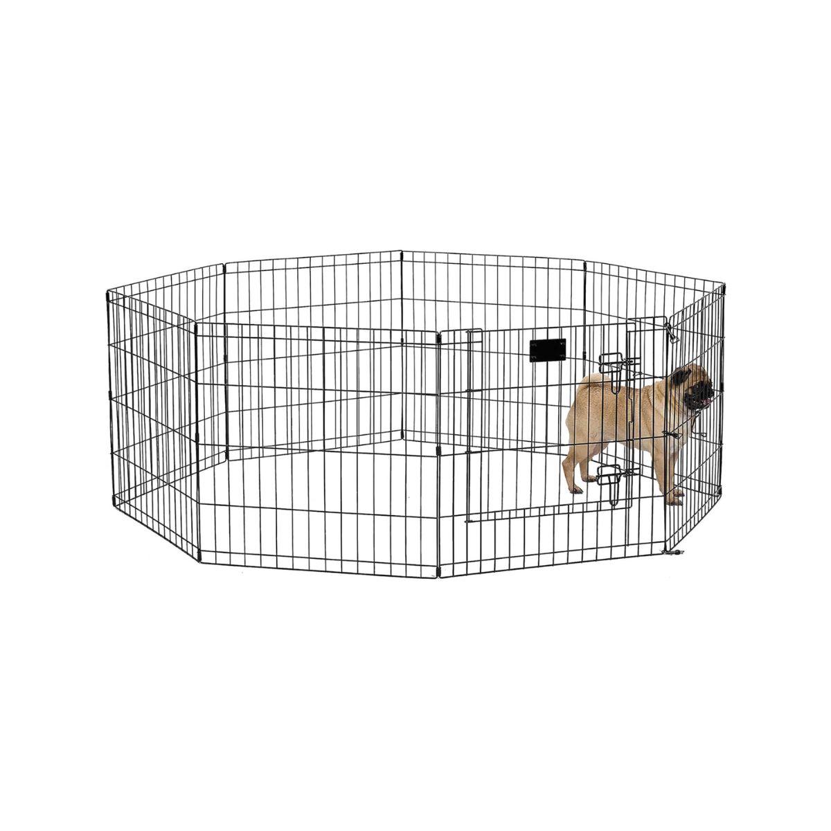 The foldable metal dog exercise pen by MidWest is perfect for safe, enclosed space. Durable black finish and easy setup for your pet’s comfort.