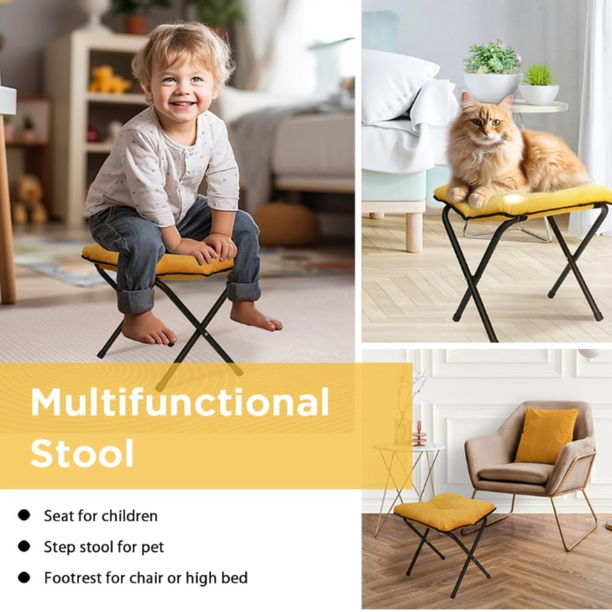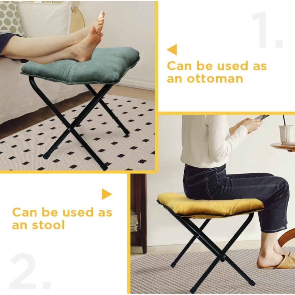 The foldable ottoman foot rest from Generic offers comfort and portability. Ideal for living room or bedroom to relax your feet.